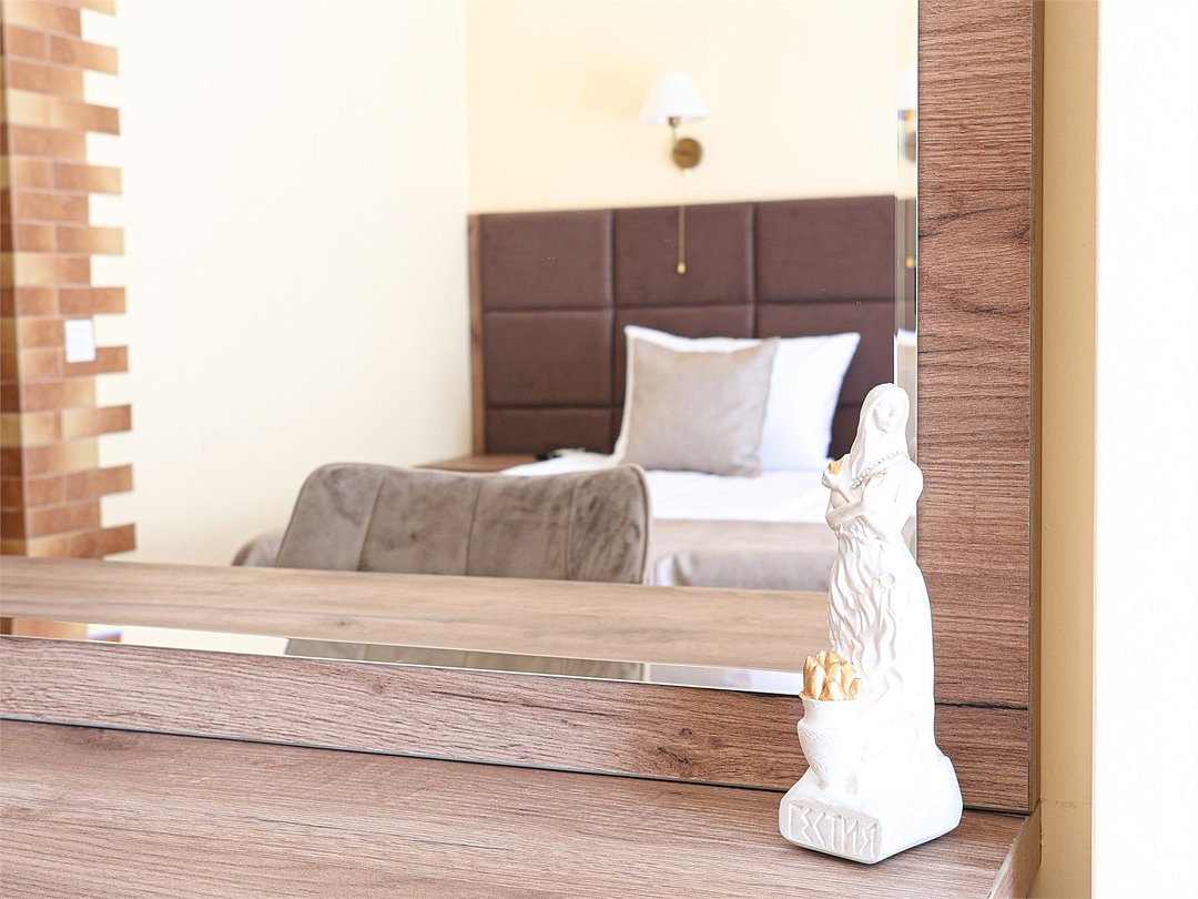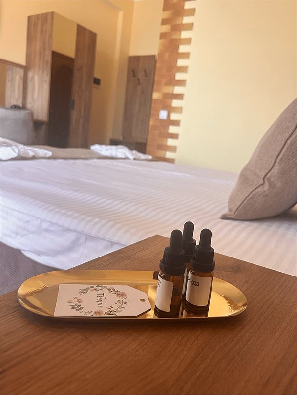 Однокомнатный номер с одной двуспальной кроватью или двумя раздельными кроватями. Номер с авторским декором, вдохновленным природой Древней Греции, персональными арома-коктейлями и аромадифузорами. Номер рассчитан на проживание до 2 человек. Площадь номера: 25м². Балкон/Лождия: терраса Вид из номера: на горы/море ❗️В номере: ЖК-телевизор Мини-бар Сплит-система Ванная комната Комфортабельная мебель ⛰ Что включено в ваше размещение: Уборка раз в 3 дня, услуги прачечной (платно) Для вашего комфортного пребывания в каждом номере есть удобства: тапочки, набор махровых полотенец, фен, косметический набор для душа. Завтрак Разрешено размещение с животными (по запросу)Услуги и удобства