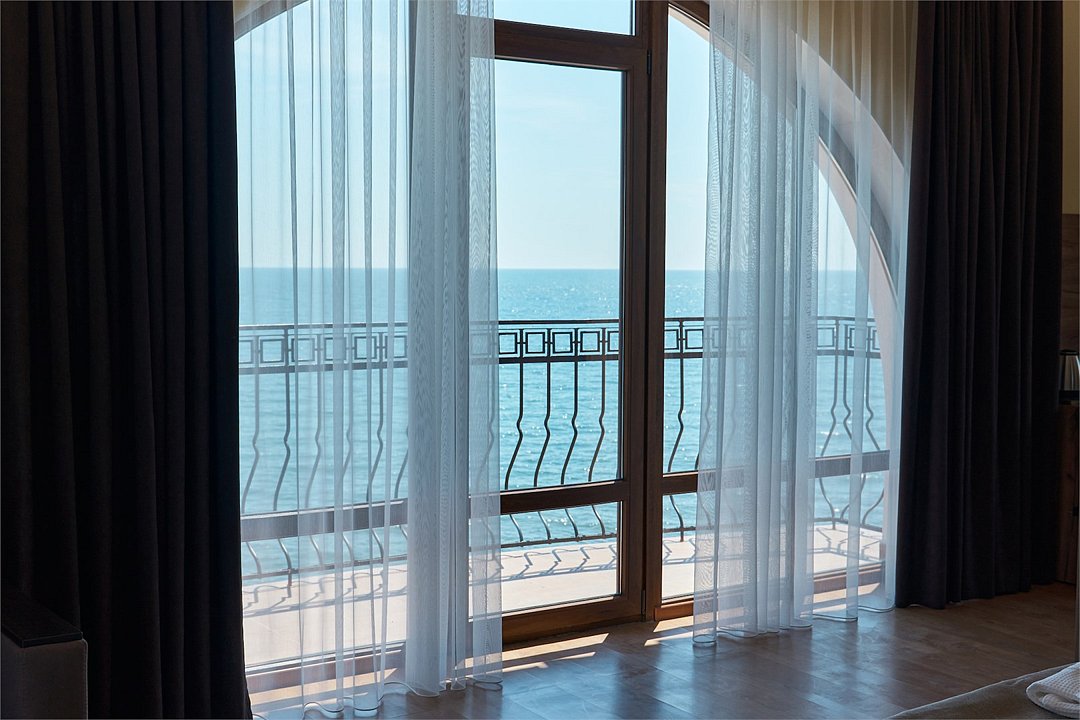 Wi-Fi, кондиционер, светильник, фен, электронные замки, ванная комната, душевая кабина, банные принадлежности, халаты, тапочки, гигиенические средства, косметические средства, две односпальные или большая двуспальная кровать, шкаф для одежды, багажная тумба, зеркало, обслуживание номеров, унитаз, душ, вид на море, ламинат, стул, стол, тумба, туалетные средства, туалет, сплит-система, панорамные окна, сушилка для белья, телевизор с плоским экраном, мини-холодильник, вид на горы, частичный вид на море, телевизор со Smart TV, балкон с боковым видом на море, онлайн-регистрация до заезда, чайная станция, услуги прачечной (платно), вешалки-плечики, мыло, затемняющая штора, окна от пола до потолка, прачечная (за дополнительную плату), без питомцев, уличная мебельВ номере