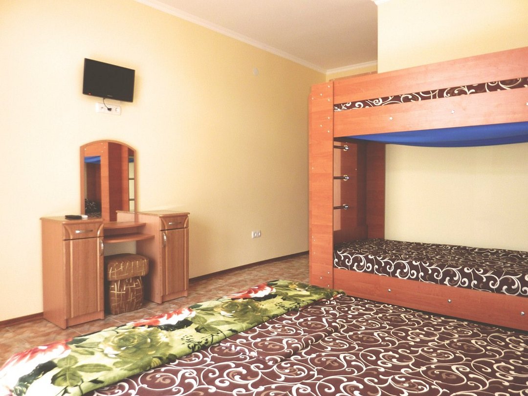 Комфортабельный четырехместный номер с детской двухъярусной кроватью и санузлом.Услуги и удобства