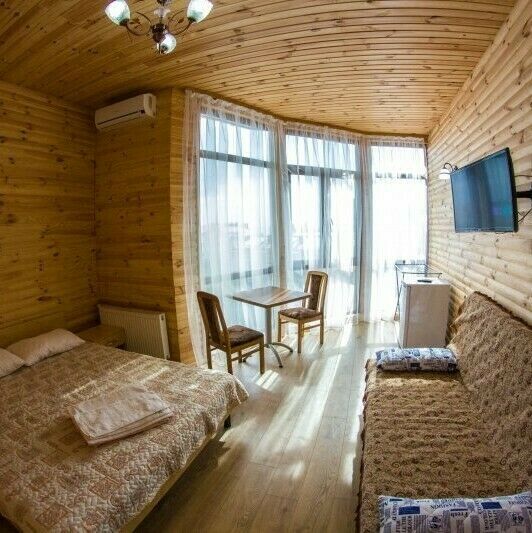 Двуспальная кровать, диван, холодильник, телевизор, кондиционер, санузел с душевой кабиной. По просьбе предоставляются утюг и чайник. У каждого номера имеется балкон, откуда открывается отличный вид на Генуэзскую крепость.