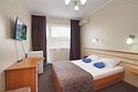Однокомнатный номер общей площадью 18 кв.м., оформленный в традиционном стиле. В номере есть все необходимое для комфортного проживания: двуспальная кровать и односпальная (или три односпальные) с удобным матрасом, балкон, шкаф для хранения одежды, прикроватные тумбы, холодильник, ЖК-телевизор, сплит-система, собственная ванная комната с душевой кабиной и туалетными принадлежностями, набор для приготовления чая/кофе. Вид из номера на город и горы. Номера расположены на 3, 4 и 5 этажах.Услуги и удобства