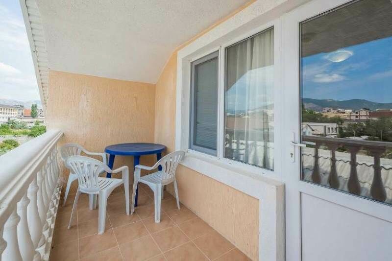 Трехэтажный корпус без лифта отеля занимает небольшую озелененную территорию площадью 3000 кв.м. Жилой фонд, предлагающий гостям номера категории Стандарт, рассчитанные на 65 человек. В каждом номере — кондиционер, телевизор, беспроводной интернет, собственный санузел с душем.