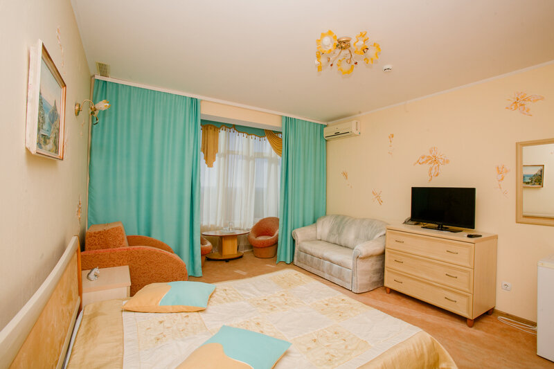 Для размещения подготовлены уютные номера со всеми необходимыми удобствам: ЖК-телевизором, собственной ванной комнатой, а так же кондиционером. С террасы гости смогут наблюдать море и горы.