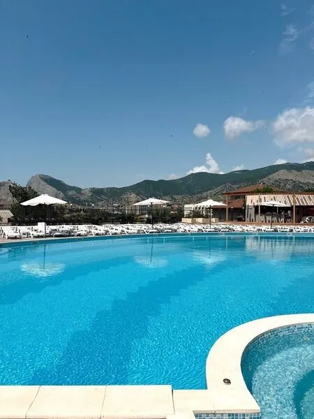 Тип бассейна: открытый бассейнВода в бассейне: подогреваемый бассейнРядом с бассейном: шезлонги, зонтики, бар у бассейнаТемпература в бассейне: 21 °CПлощадь: 600 м²Глубина (диапазон): от 120 до 150 смПросторная аквазона отеля включает в себя четыре зоны: взрослый и детский бассейны с подогревом, джакузи и русскую парную. Отсюда открывается панорамный вид на горы и величественную Генуэзскую крепость.