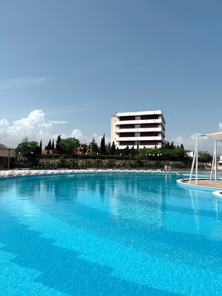 ДостоинстваОтдыхали в пансионате с семьей, остались очень довольны. Номера просторные, оснащены всем необходимым. Территория вокруг пансионата и внутри шикарная, за ней регулярно ухаживают. Есть теннисный корт – в нормальном состоянии. До моря можно дойти буквально за 15 минут. Бассейн очень крутой, купались пару раз. Есть развлечения для детей.
