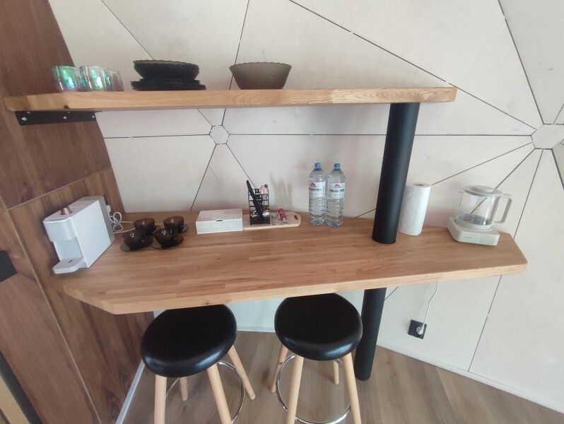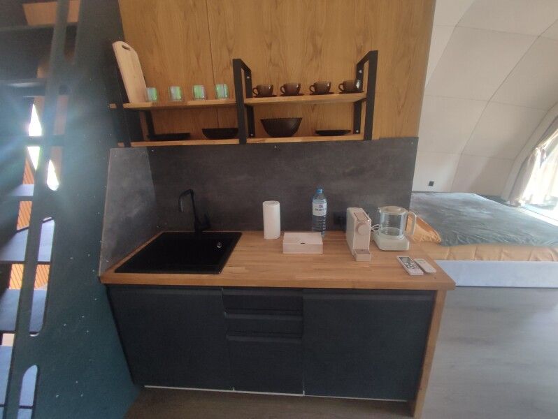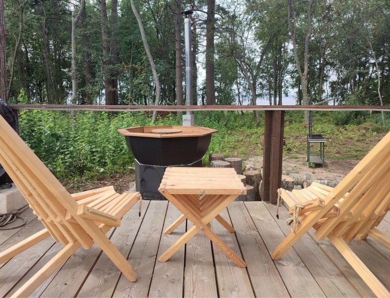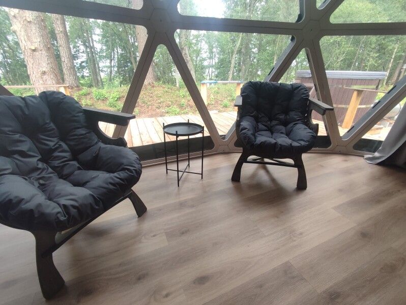 Вас ждут комфортабельные домики со всеми удобствами. Насладитесь прекрасным видом на озеро прямо из вашего номера. Внутри вы найдете все необходимое: кондиционер, бризер-ионизатор воздуха, теплый пол, а также небольшую кухню с чайником, капсульной кофе-машиной и необходимой посудой. Всего пара шагов отделяют вас от собственной террасы, где вы сможете расслабиться на удобной уличной мебели и приготовить вкусный ужин на мангале.