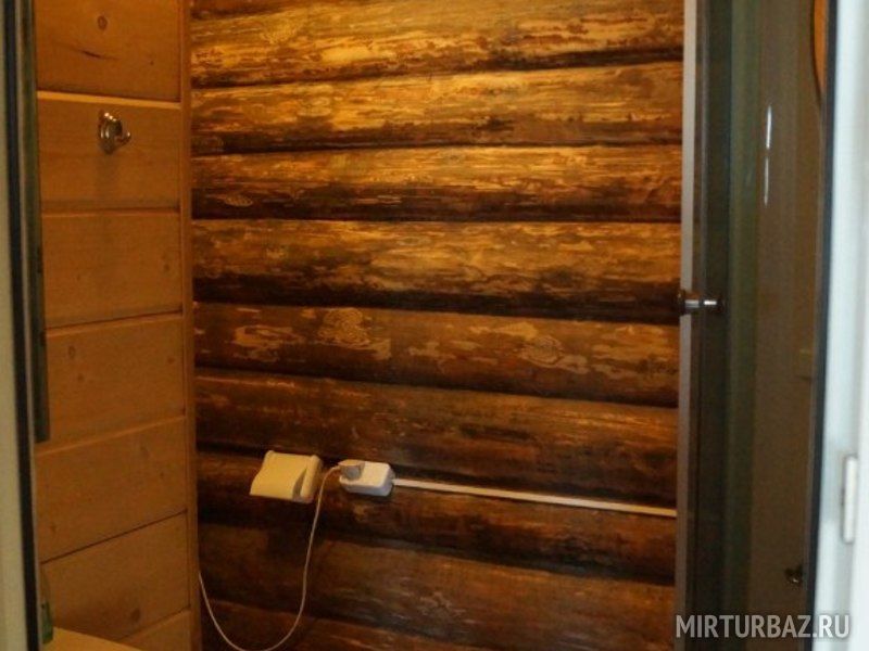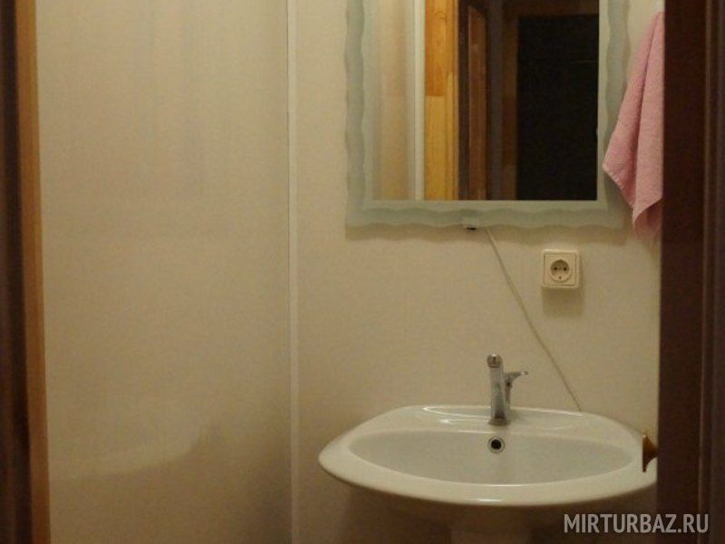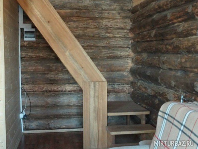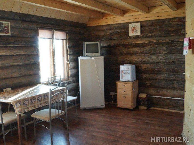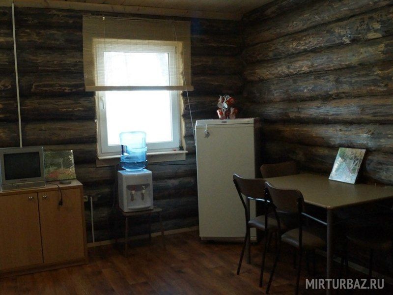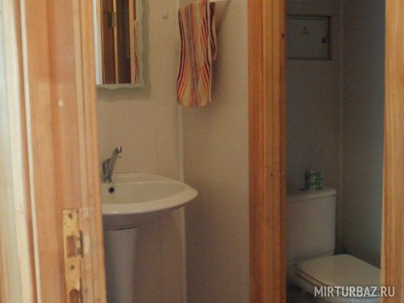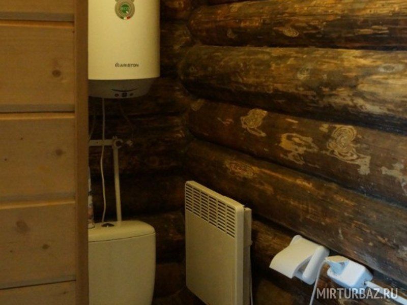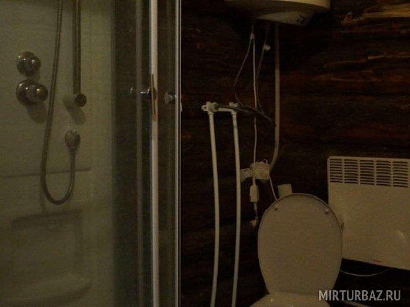 1 этаж: туалет, душ, телевизор, холодильник, посуда, кулер, раскладной диван;