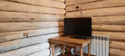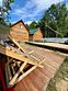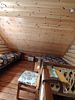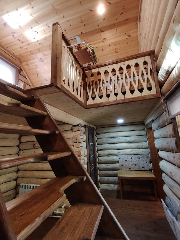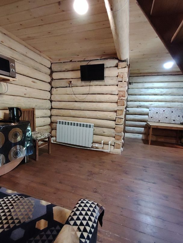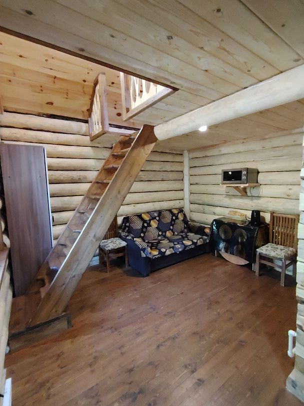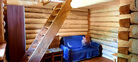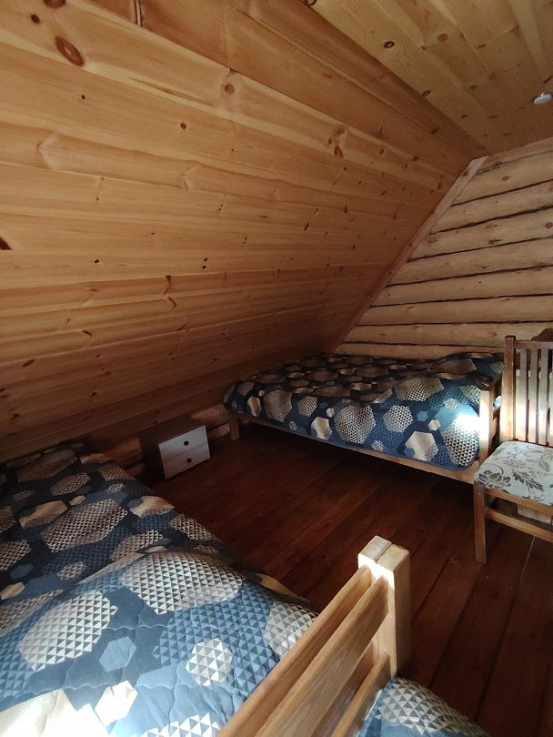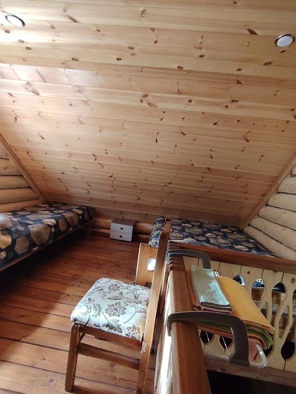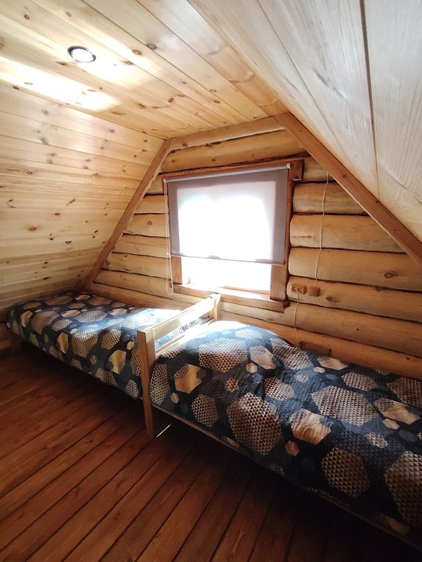 Гостей ждут четыре уютных двухъярусных домика-сруба, построенных в традиционном стиле. Каждый домик оборудован удобными односпальными и двуспальными кроватями, мягким диваном для отдыха, телевизором и собственной ванной комнатой с душем.