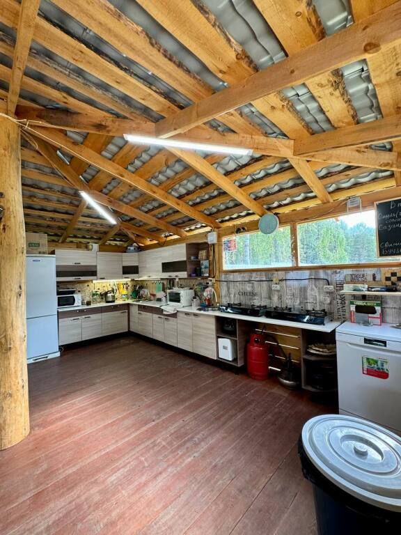 Просторная столовая (летний период), оборудованная всем необходимым. В зимний период все необходимое для приготовления пищи размещается в домиках.