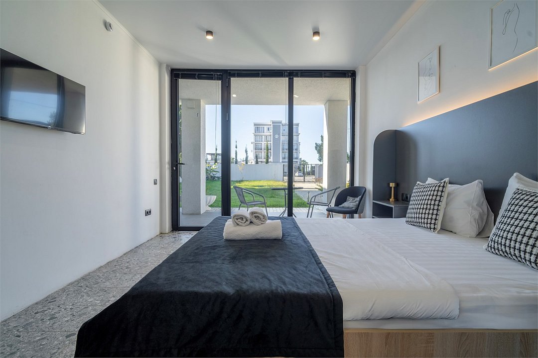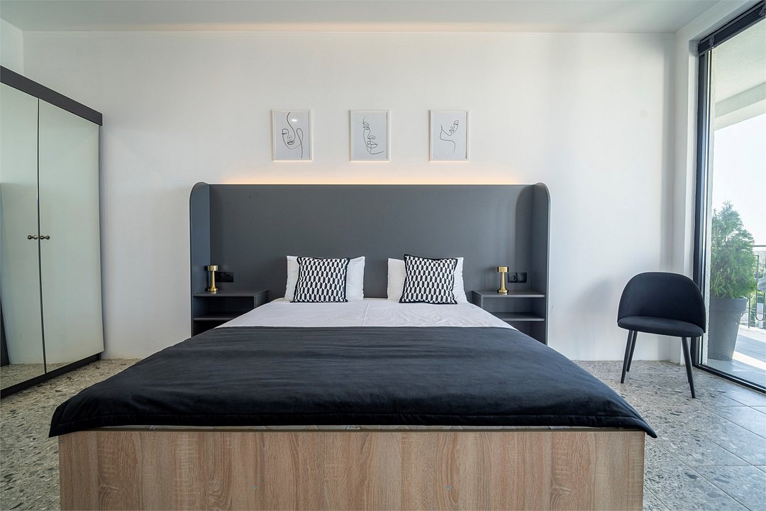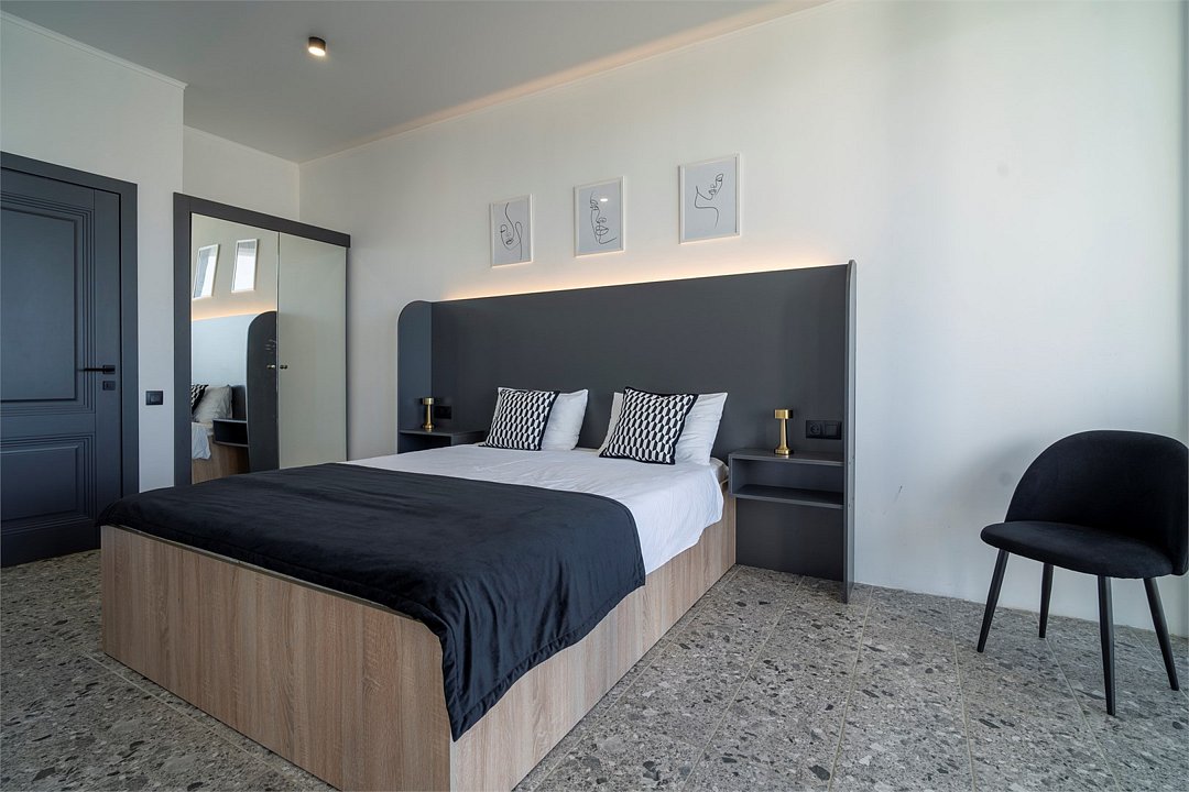 телевизор, Wi-Fi, интернет, кондиционер, фен, электронные замки, гидромассажная ванна, санузел, халаты, банные полотенца, пляжные полотенца, тапочки, гигиенические средства, балкон, балкон с красивым видом, две односпальные или большая двуспальная кровать, кресла, тумбы, шкаф для одежды, вешалки, багажная тумба, зеркало, две комнаты, чайный набор, набор посуды, обслуживание номеров, сейф, раковина, гостиная зона, ковровое покрытие, вид на море, кулер на этаже, кресло, стаканы, стул, стол, внутренний телефон, мини-холодильник, рабочий стол, чайная станция, уборка номера, СПАВ гостиничном номере