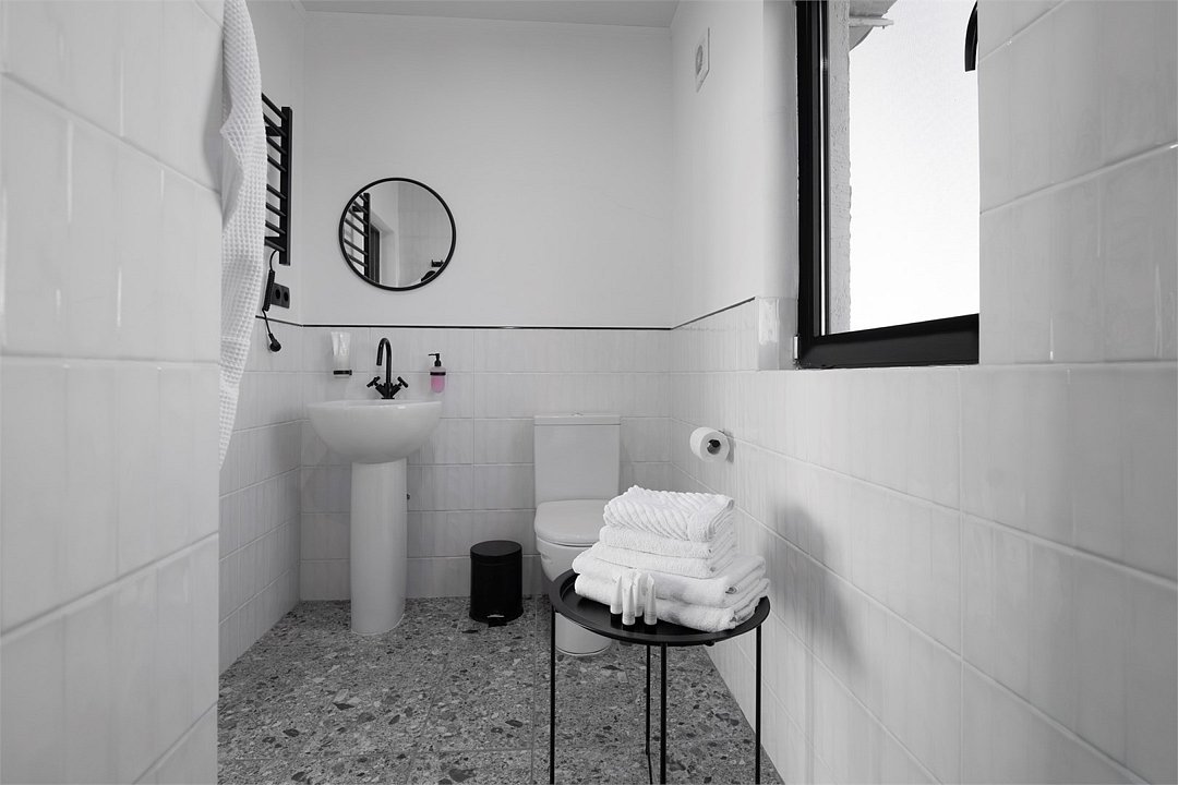 Wi-Fi, кондиционер, тапочки, двуспальная кровать, шкаф для одежды, вешалки, зеркало, душ, вид во двор, туалет, телевизор с плоским экраном, мини-холодильник, без питомцевВ гостиничном номере