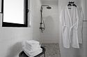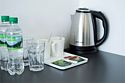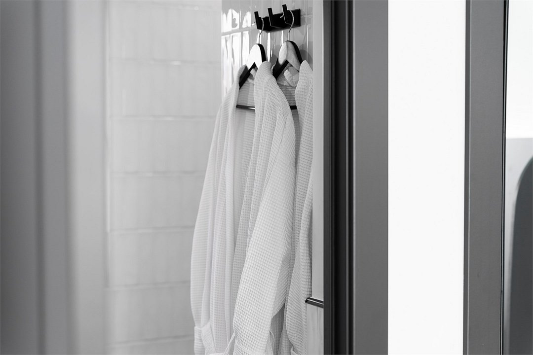 Wi-Fi, кондиционер, фен, ванная комната, санузел, банные принадлежности, халаты, тапочки, гигиенические средства, двуспальная кровать, тумбы, шкаф для одежды, вешалки, зеркало, чайный набор, набор посуды, обслуживание номеров, сейф, чайник, раковина, душ, плиточное покрытие, вид во двор, стаканы, стул, туалетный столик, туалетные средства, панорамные окна, телевизор с плоским экраном, мини-холодильник, номер для некурящих, уборка номера, бутилированная вода, СПА, мыло, окна от пола до потолка, без питомцевВ гостиничном номере