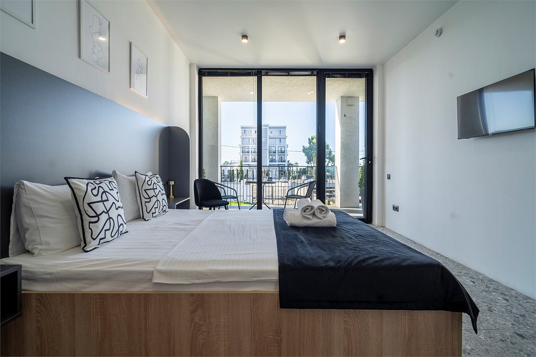 В двухместном номере "Стандарт с балконом и видом на море" есть все, чтобы почувствовать комфорт. В апартаментах с балконом открывается великолепный вид на море. Проживание 1-го ребенка до 4 лет бесплатно.Услуги и удобства