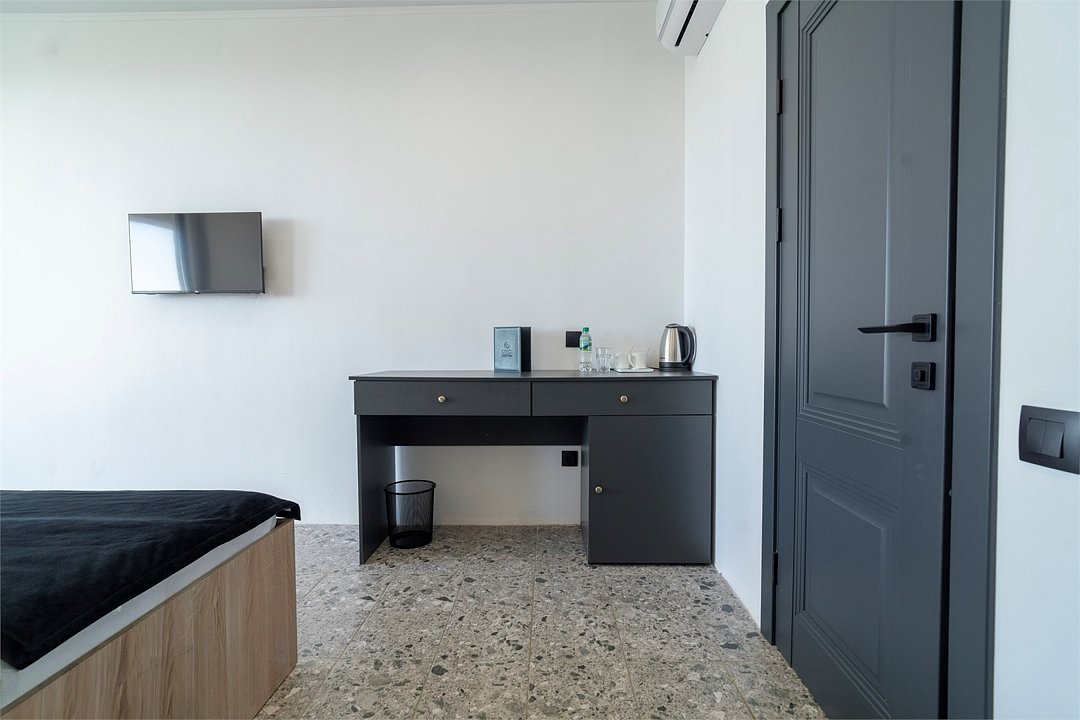 телевизор, Wi-Fi, интернет, кондиционер, фен, электронные замки, санузел, халаты, банные полотенца, пляжные полотенца, тапочки, гигиенические средства, балкон, две односпальные или большая двуспальная кровать, тумбы, шкаф для одежды, вешалки, зеркало, чайный набор, набор посуды, обслуживание номеров, сейф, раковина, ковровое покрытие, душ, кулер на этаже, вид во двор, стаканы, стул, внутренний телефон, мини-холодильник, шкаф-купе, рабочий стол, чайная станция, уборка номера, СПАВ гостиничном номере