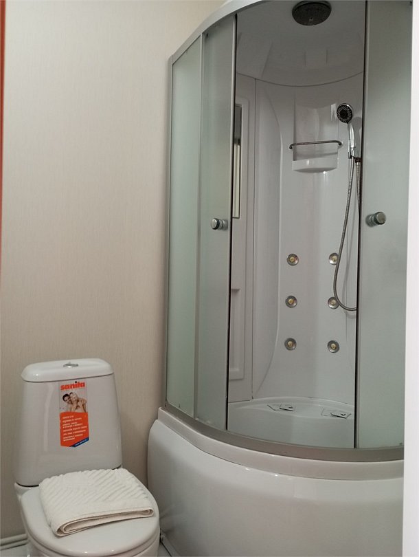 Wi-Fi, интернет, холодильник, ванная комната, душевая кабина, банные полотенца, две односпальные кровати, тумбы, шкаф для одежды, зеркало, вид во двор, туалет, сплит-система, диван-кровать, телевизор с плоским экраномВ номере
