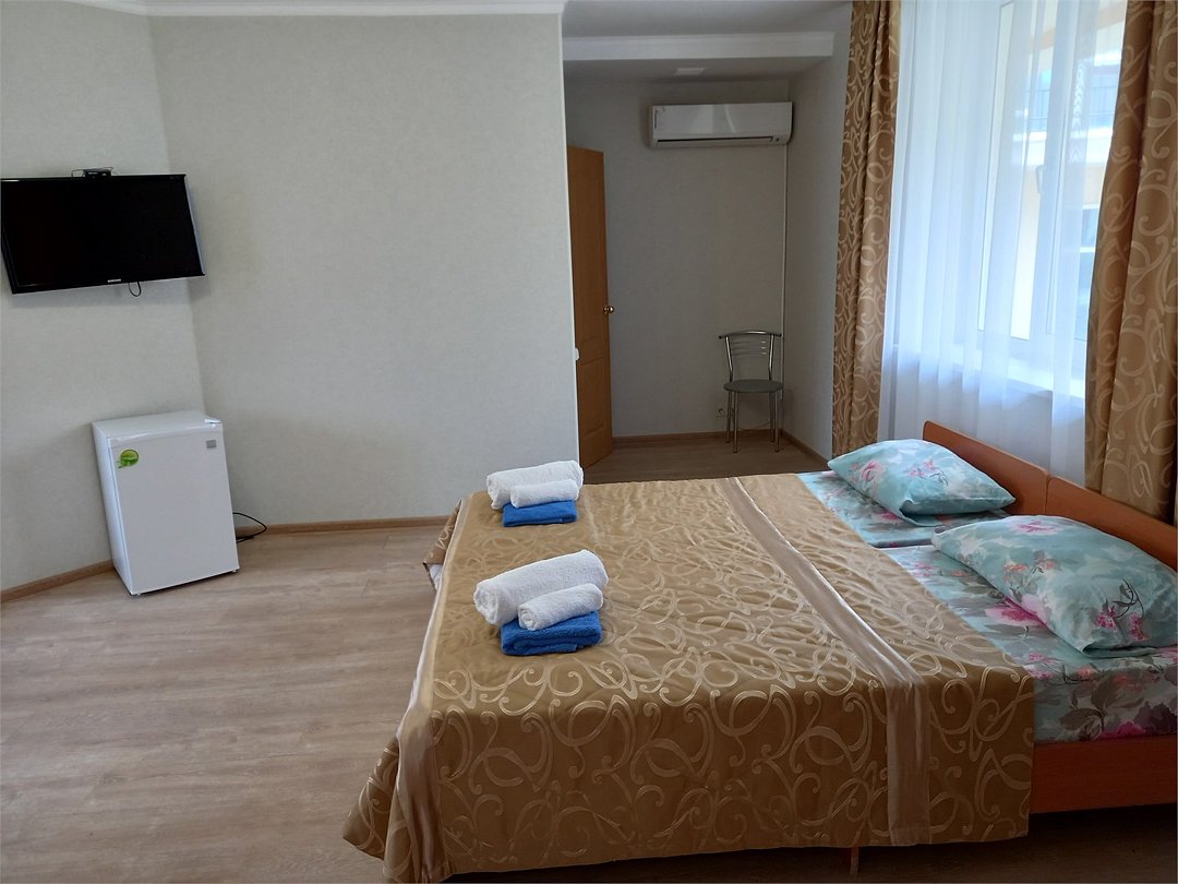 Номер «Стандарт 3-х местный » -30 м2, находится на первом этаже 2-х этажного коттеджа. Две односпальные кровати и раскладной диван, бесплатный Wi-Fi, собственная ванная комната, кондиционер, шкаф или гардероб, кондиционер, холодильник, телевизор с плоским экраном.Услуги и удобства