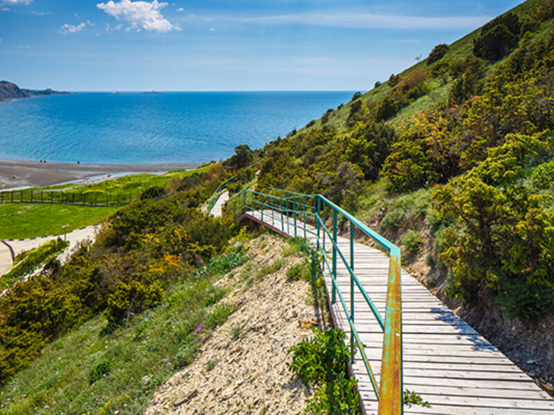 Характеристики пляжа (300 м, спуск осуществляется по лестнице):