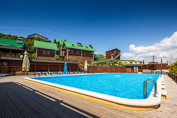 Тип бассейна: открытый бассейнРядом с бассейном: шезлонги, зонтикиРазмеры: 14 x 25 мПлощадь: 350 м²Сезонный бассейн с детским отделением для купания.