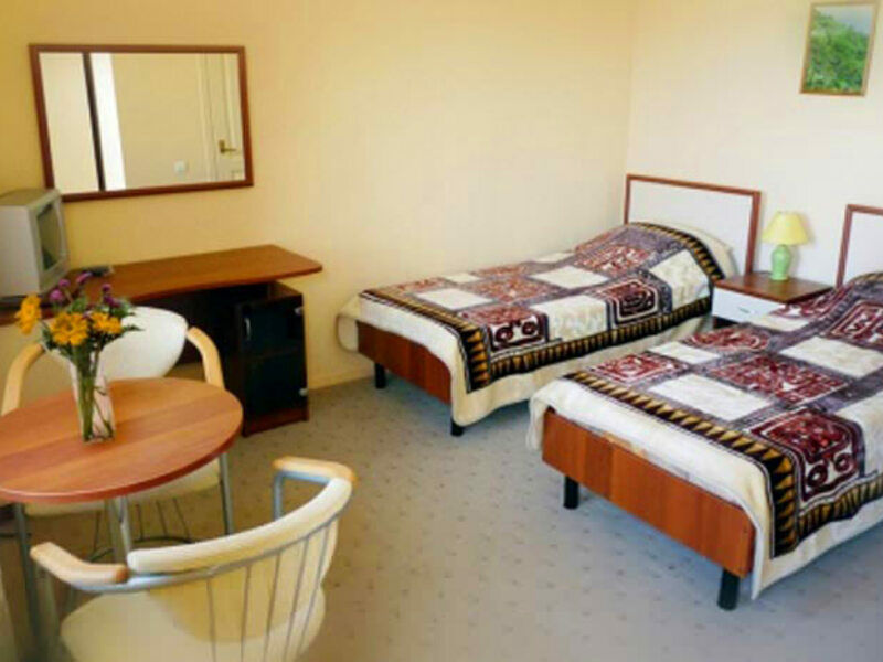 Территория гостиницы находится на склоне горы, из нее открываются потрясающие панорамные виды на окрестности. Жилой фонд гостиницы, способный одновременно вместить около 250 человек, составляют, в основном, 2-этажные корпуса. Номера имеют разные категории, с разным количеством мест и позволяют выбор бюджетных вариантов. В хорошо меблированных номерах есть автономные санузлы с душем (в блоке – 1 санузел на три номера). Каждый номер оборудован необходимым набором бытовой техники: сплит-системой, мини-холодильником, телевизором. Wi-Fi доступен на территории гостиницы.
