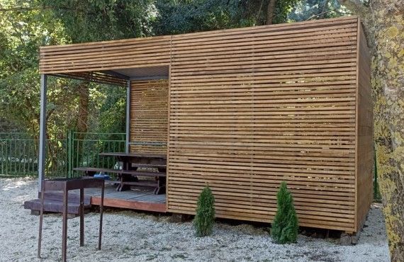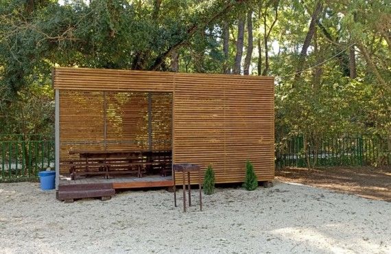 ней с комфортом проведут время до 10 человек. Здесь есть мангальная зона, удобные лавочки, столы и стулья; можно активно провести время, пожарить шашлык по любимому рецепту и отвлечься от рабочих будней!