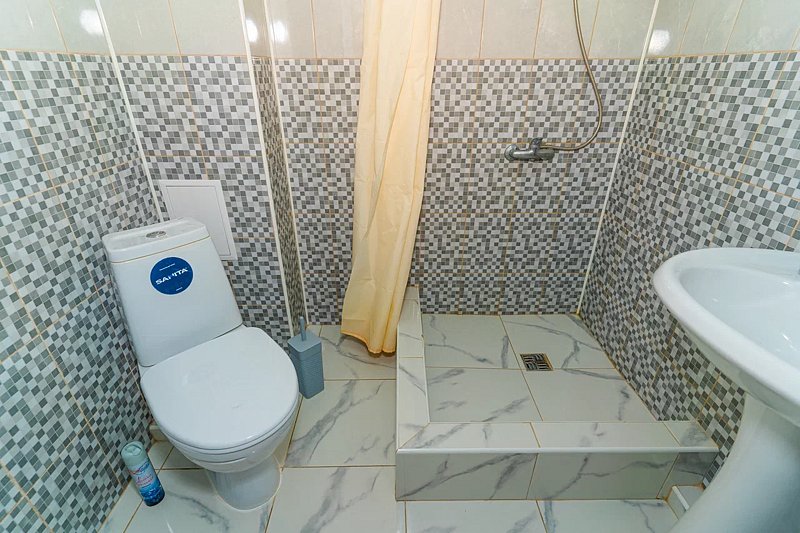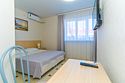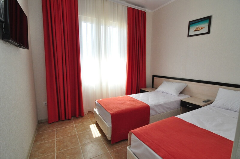 Номер площадью 22 м². В номере - 1 отдельная кровать и одна двуспальная кровать, кондиционер, шкаф, телевизор, мини холодильник, зеркало. В номере также есть собственный сан. узел с душевой кабинкой. В стоимость номера входит бесплатное пользование Wi-Fi.