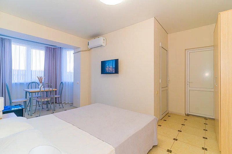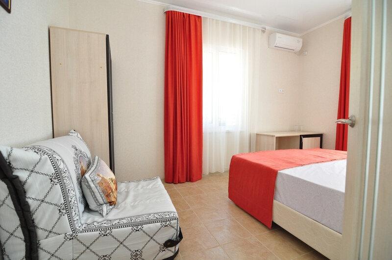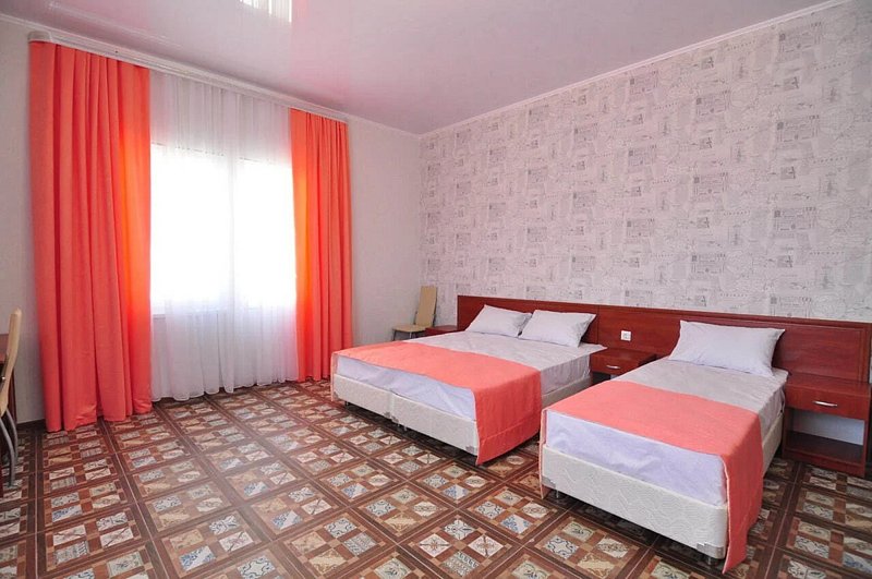 Номер с отдельным входом, площадью 25 м². В номере — одна двуспальная кровать и одна двухъярусная кровать размером 160х70, кондиционер, шкаф, телевизор, мини холодильник, зеркало (возможно доп. место платно). В номере также есть собственный сан. узел с душевой кабинкой. В стоимость номера входит бесплатное пользование Wi-Fi.