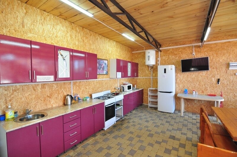 Есть кухня для самостоятельного приготовления пищи, где вы можете приготовить себе и деткам, что хотите. И холодильник.