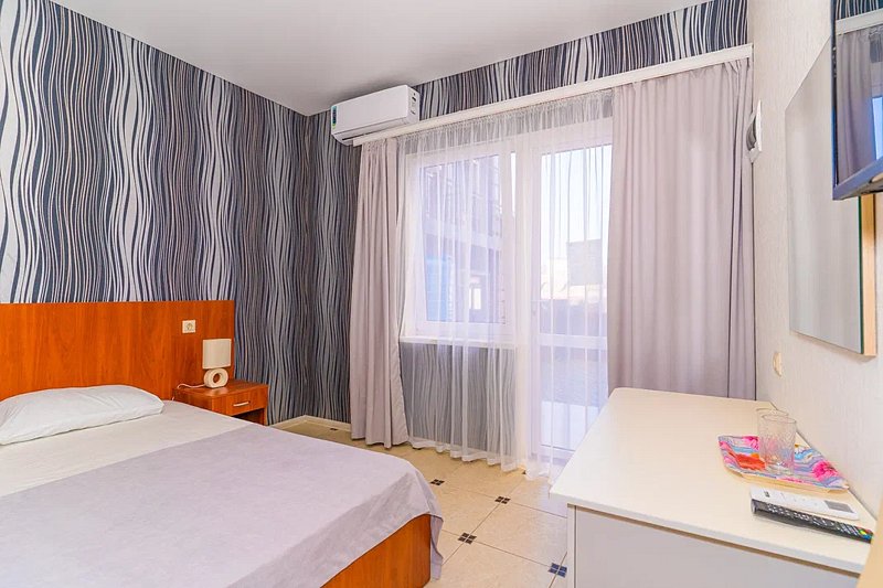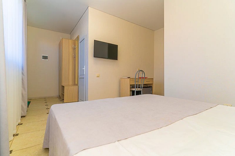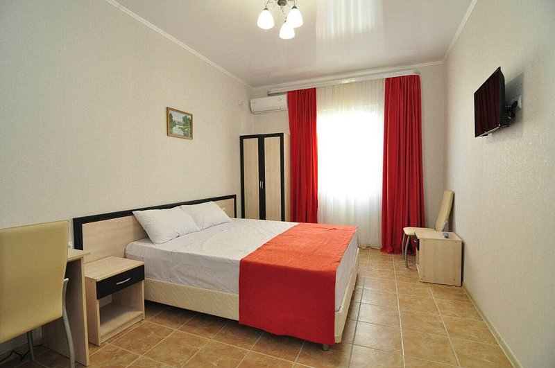Номер с отдельным входом, площадью 18 м². В номере - 2 отдельные кровати или одна двуспальная кровать, кондиционер, шкаф, телевизор, мини холодильник, зеркало. В номере также есть собственный сан. узел с душевой кабинкой. В стоимость номера входит бесплатное пользование Wi-Fi.