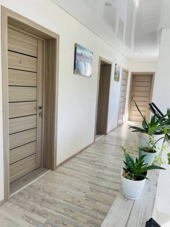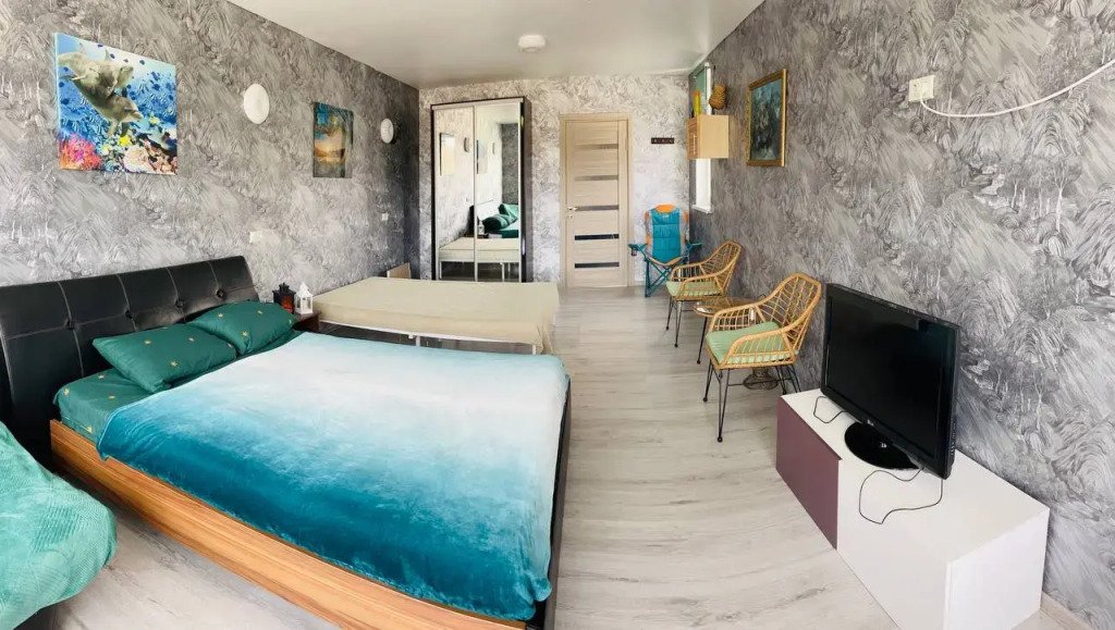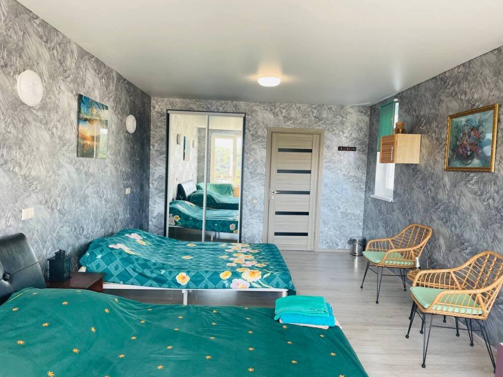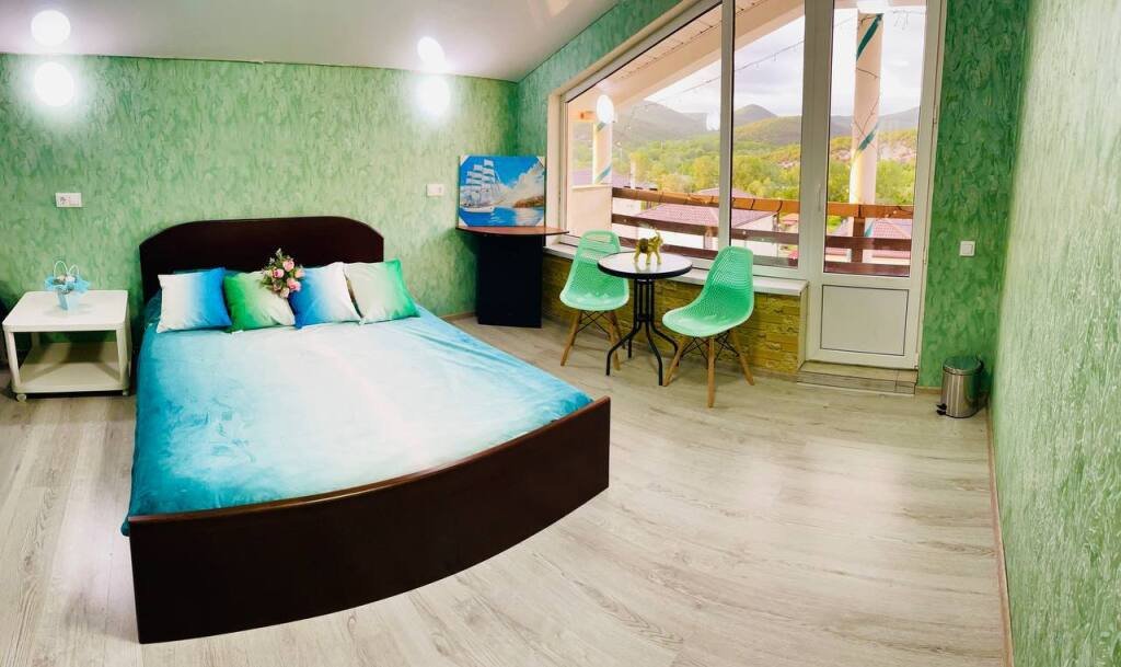 Комфортная двухместная комната в коттедже. В комнате: двуспальная кровать, тумбочка, кондиционер, шкаф. Санузел на этаже.