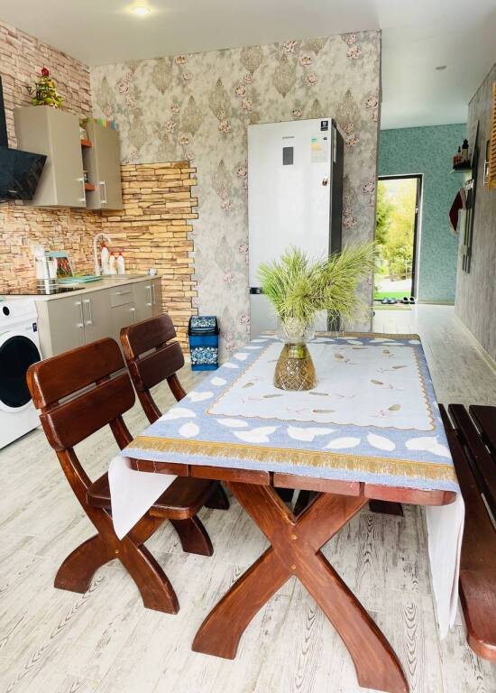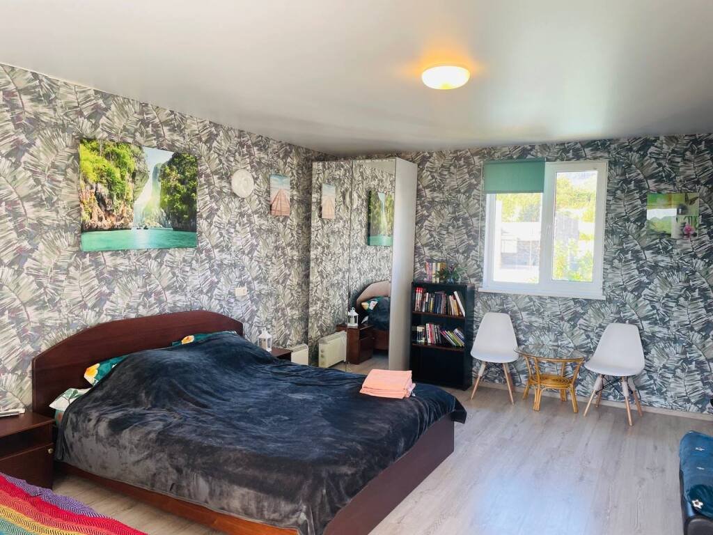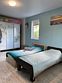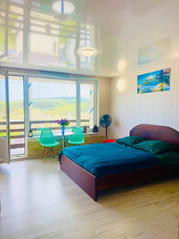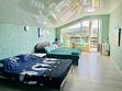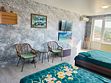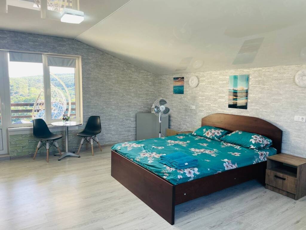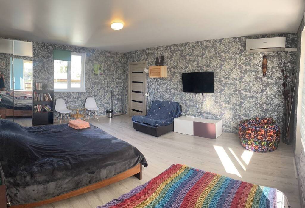 Комфортная двухместная комната в коттедже. В комнате: двуспальная кровать, тумбочка, шкаф, терраса с качалкой-коконом и диваном. Санузел на этаже.