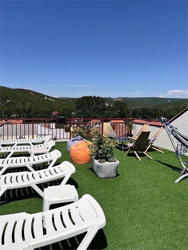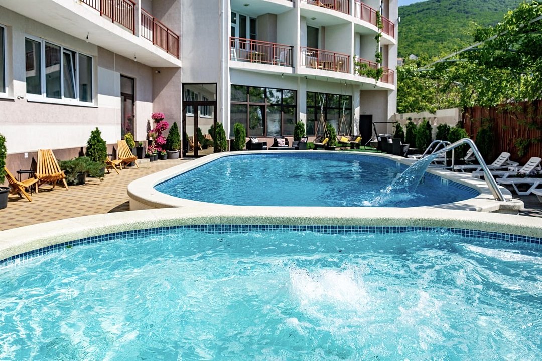 Проживая в "Морском" комплексе гости могут воспользоваться инфраструктурой отеля "Винговер (теплые бассейны, трансферт на пляж Утриш, столовая, терраса)