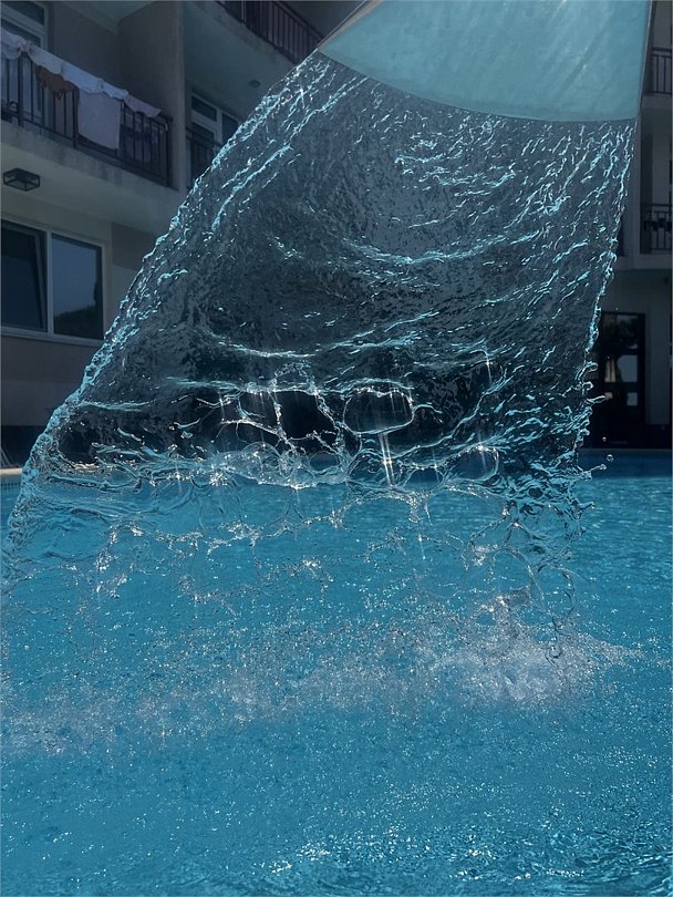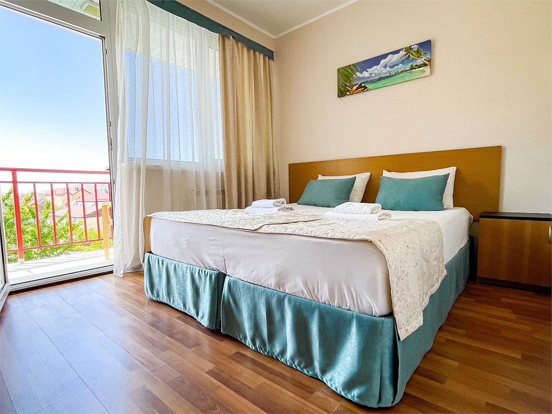Песчаный пляж находится в 10-15 минутах ходьбы. Пляже хорошо оборудован — есть раздевалки, душевые, прокат шезлонгов и лежаков, работают кафе. Отель ежедневно по расписанию предлагает гостям трансфер до Черноморского побережья.