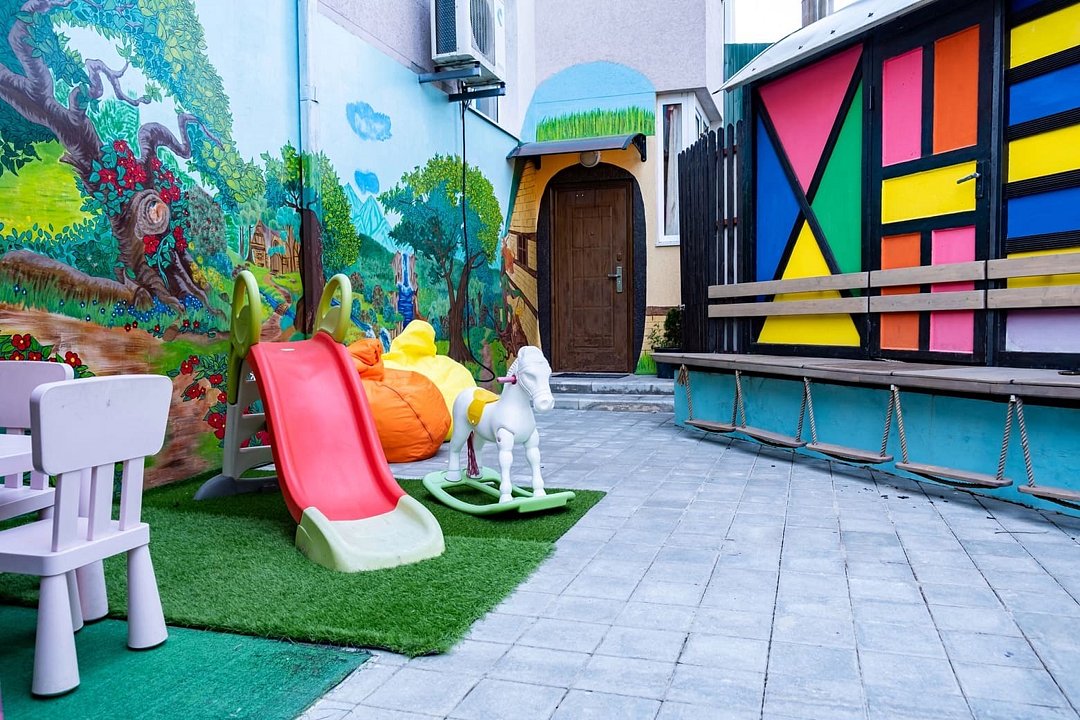 - для детей: детская площадка с горками и батутами, детские кроватки
