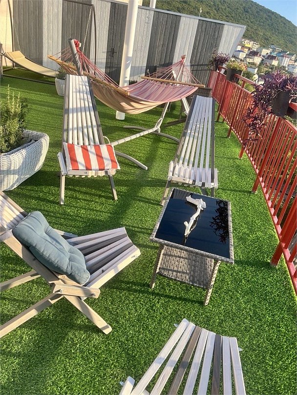 Номер располагает собственной террасой с шезлонгами и гамаком. С прекрасным видом на море и горыУслуги и удобства