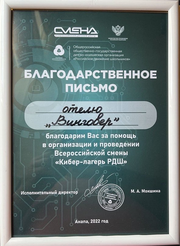 Путешествие с семьей"Винговер" один из лучших отелей Анапы!Отличный отель! Очень уютно и чисто. Есть три теплых бассейна, один расположен на открытой террасе 5-го этажа. Можно плавать и любоваться видом всего курорта - красота! Ни где такого не встречал! Еда очень вкусная - шведский стол, напитки включены (пиво, лимонад, кофе и др.)