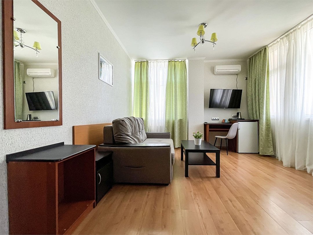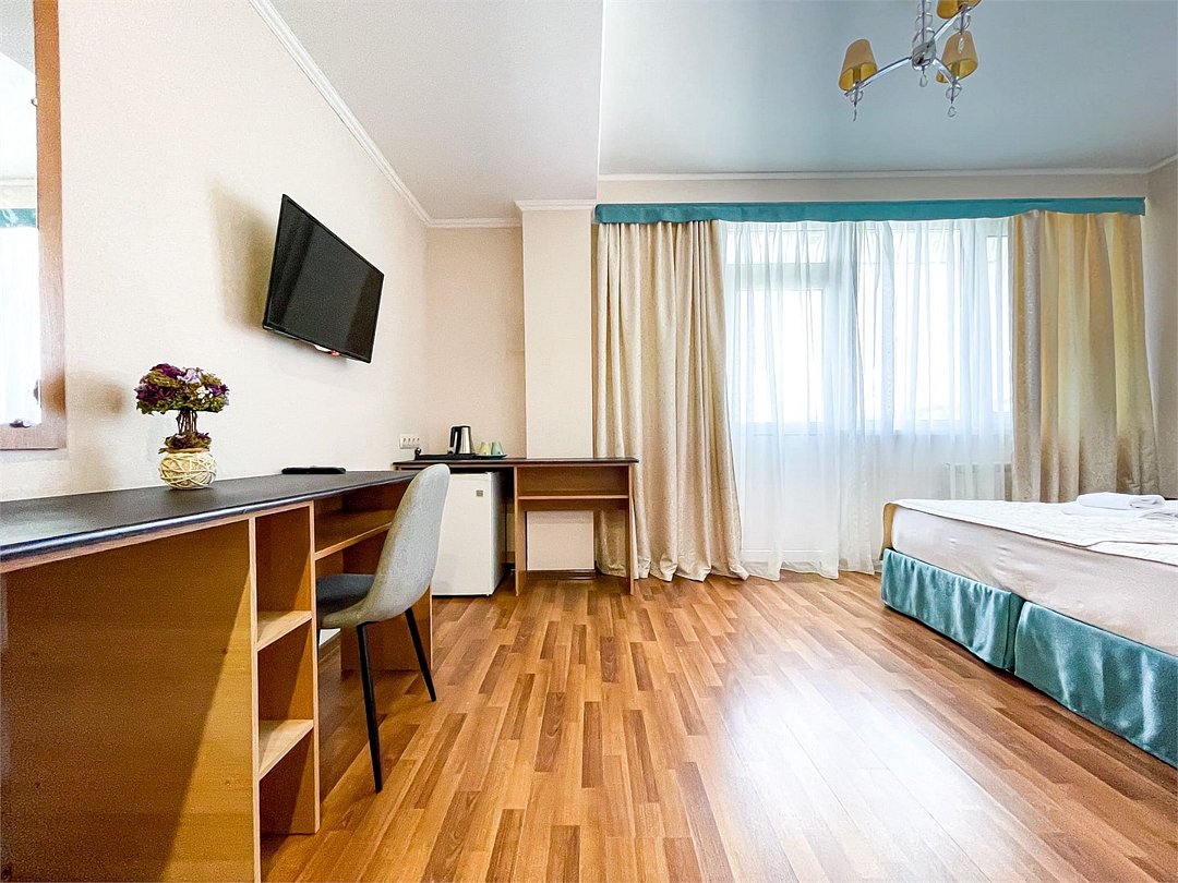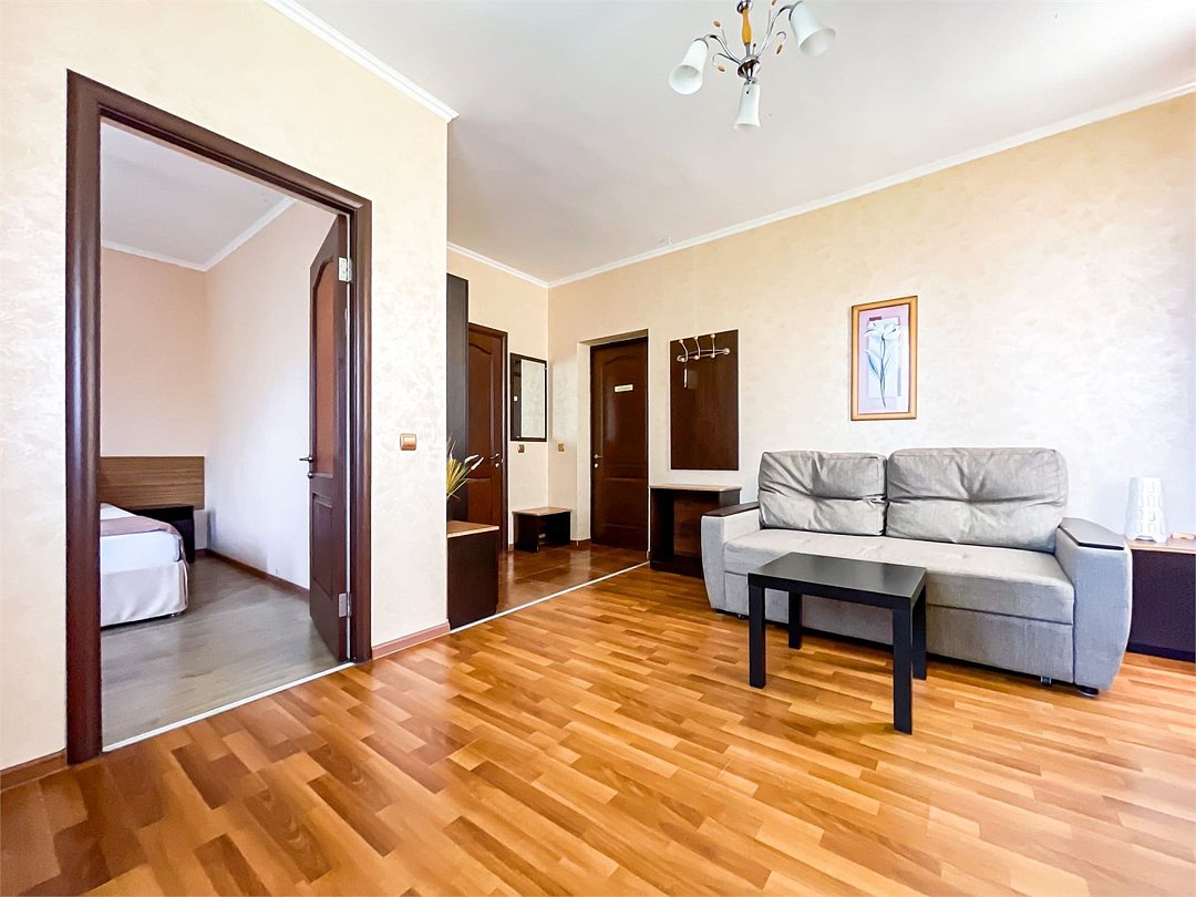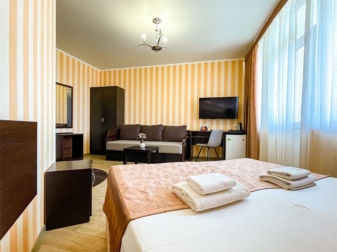 Семейный номер. Состоит из 2-х комнат. В гостиной установлен 2-х сальный диван. В спальне можно установить 2 односпальные кровати или одну 2-х спальную кровать. Так же один из номеров оснащен детской двухуровневой кроватью. Очень удобной и комфортной для детей Номер с лоджиейУслуги и удобства