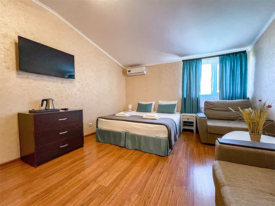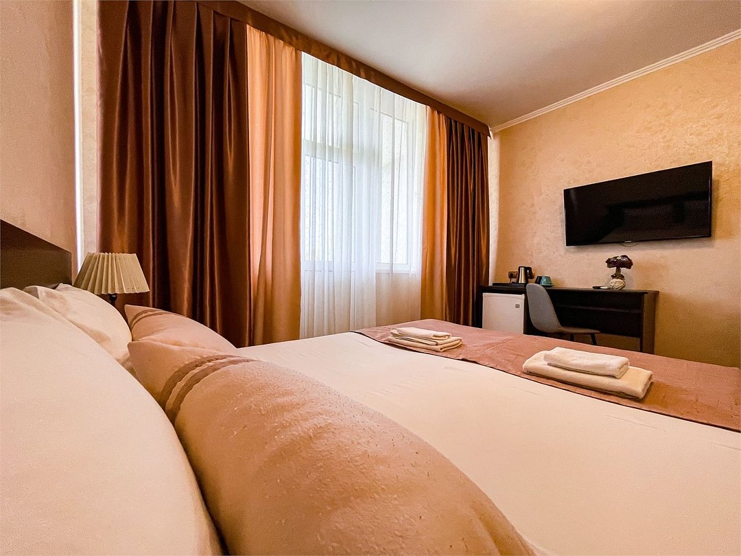 Просторный номер для семьи из 3-4 человек. Номер расположен на 1 этаже, без балкона При желании, можно разместить 4 гостя на дополнительном спальном местеУслуги и удобства