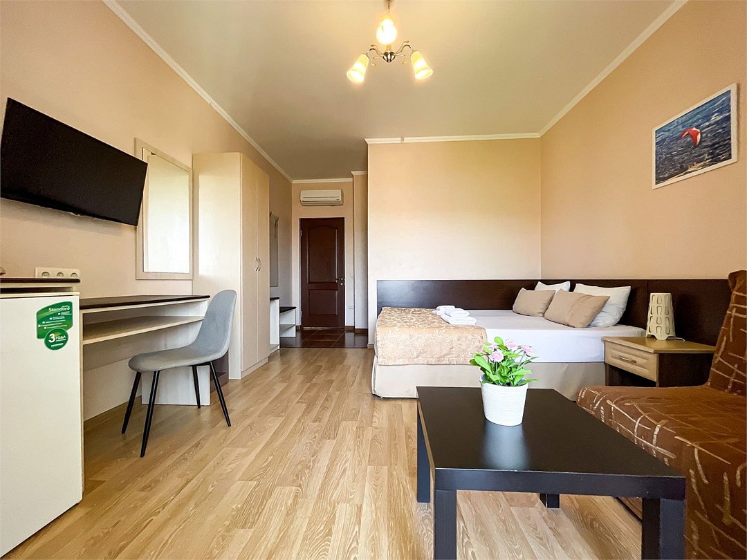 телевизор, спутниковое телевидение, Wi-Fi, интернет, холодильник, светильник, настольные лампы, фен, душевая кабина, банные полотенца, пляжные полотенца, косметические средства, балкон с красивым видом, лоджия, двуспальная кровать, ортопедический матрас, диван, тумбы, стулья, шкаф для одежды, вешалки, журнальный столик, письменный стол, багажная тумба, зеркало, чайный набор, унитаз, раковина, отопление, вид на море, ламинат, стаканы, стул, стол, тумба, туалет, сплит-система, панорамные окна, цифровое тв, телевизор с плоским экраном, москитная сетка, вид на горы, частичный вид на море, телевизор со Smart TV, номер для некурящих, вид на бассейн, чайная станция, двуспальный раскладной диван-кровать, вешалки-плечики, мыло, можно с питомцами, уличная мебельВ гостиничном номере