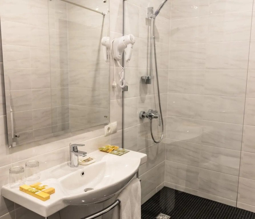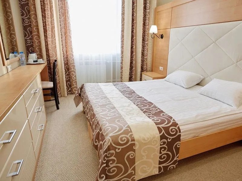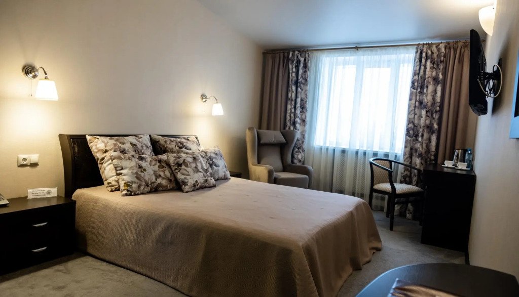 В номере гостей ждут телевизор, халат и тапочки. Оснащение зависит от выбранной категории номера.