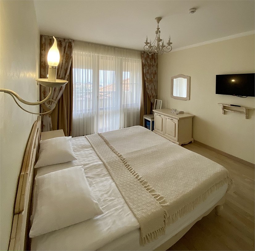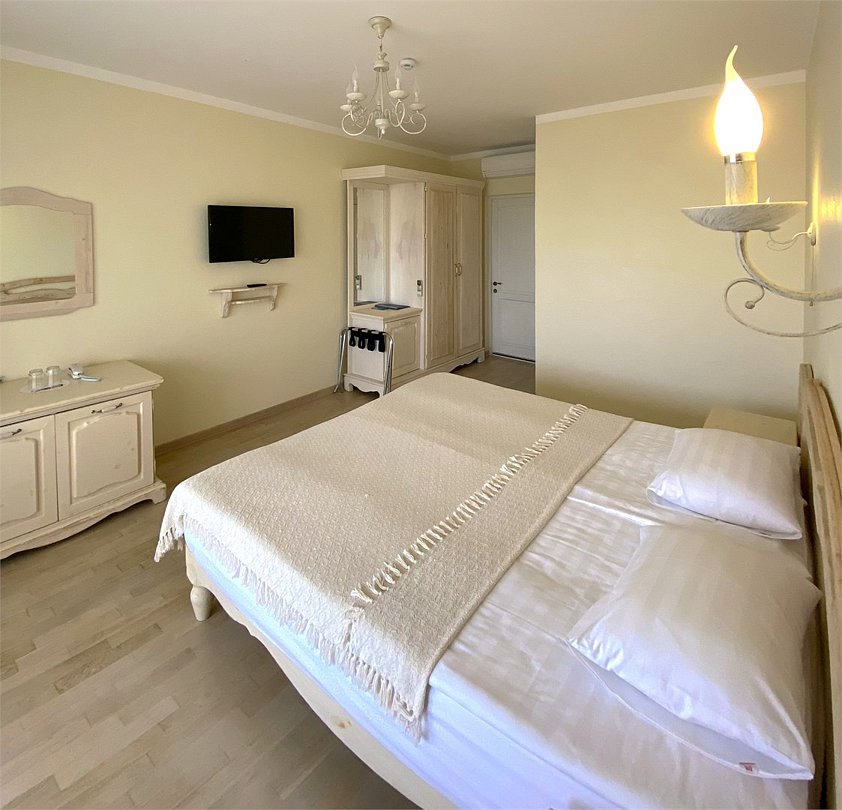 Улучшенный двухсместный номер с большой двуспальной или двумя односпальными кроватями выполнен в стиле прованс и создает уютную, комфортную атмосферу. Номер может удовлетворить любую потребность гостя, оборудован высокотехнологичными средствами коммуникации . Вас ждет богатство использованных в отделке натуральных материалов, деревянная мебель ручной работы, душевая комната выполненная по индивидуальному проекту. Панорамные окна номеров позволят гостям насладиться прекрасным видом на Анапскую бухту.Услуги и удобства