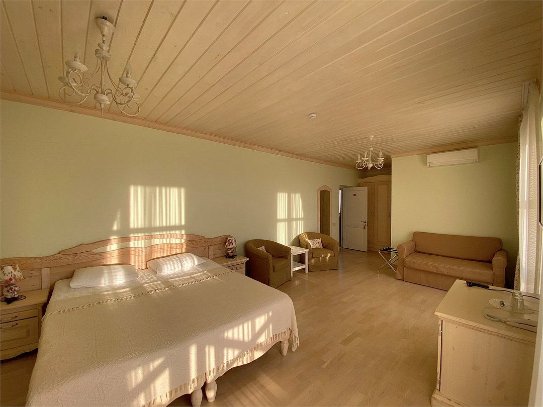 Элегантно оформленные двухкомнатные номера общей площадью в 45 кв.м. Каждый номер располагает спальней с большой двухспальной кроватью и гостиной с гостиным уголком. Оснащен современными средствами коммуникаций и комфортными зонами для работы и отдыха, высокоскоростным интернетом, сейфом, индивидуальным климат-контролем. Вас ждет богатство использованных в отделке натуральных материалов, деревянная мебель ручной работы, душевая комната выполненная по индивидуальному проекту . С шикарной террасы открывается прекрасный вид на Анапскую бухту.Услуги и удобства