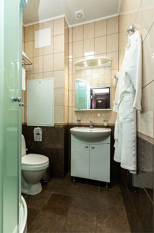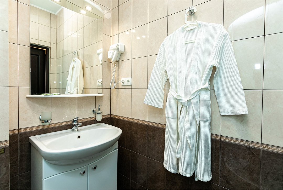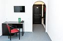Однокомнатный номер, площадью 16 кв.м, оснащён полутороспальной кроватью. Окна выходят в атриум отеляУслуги и удобства