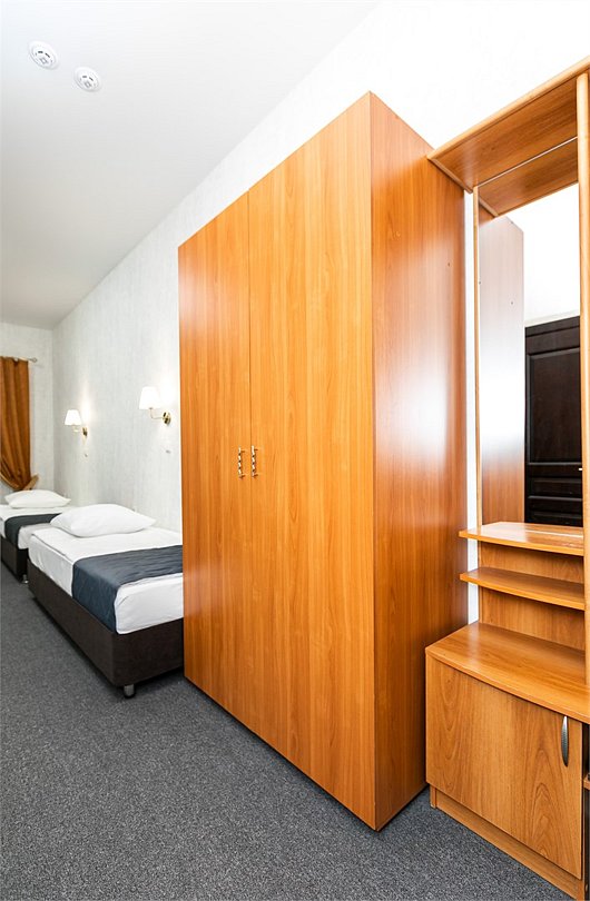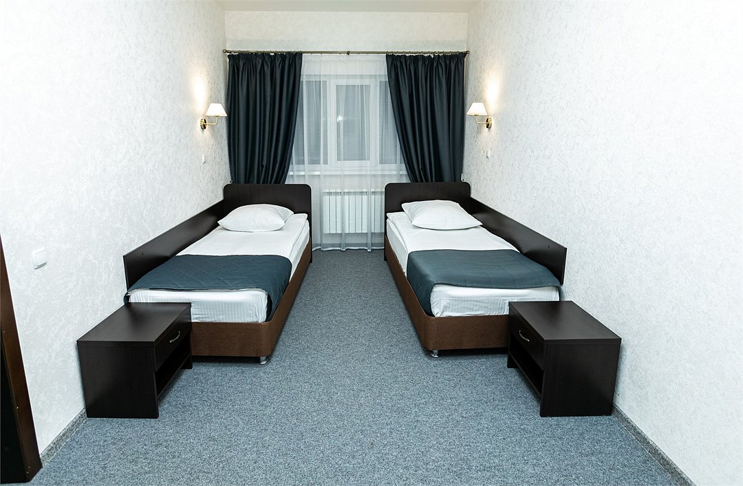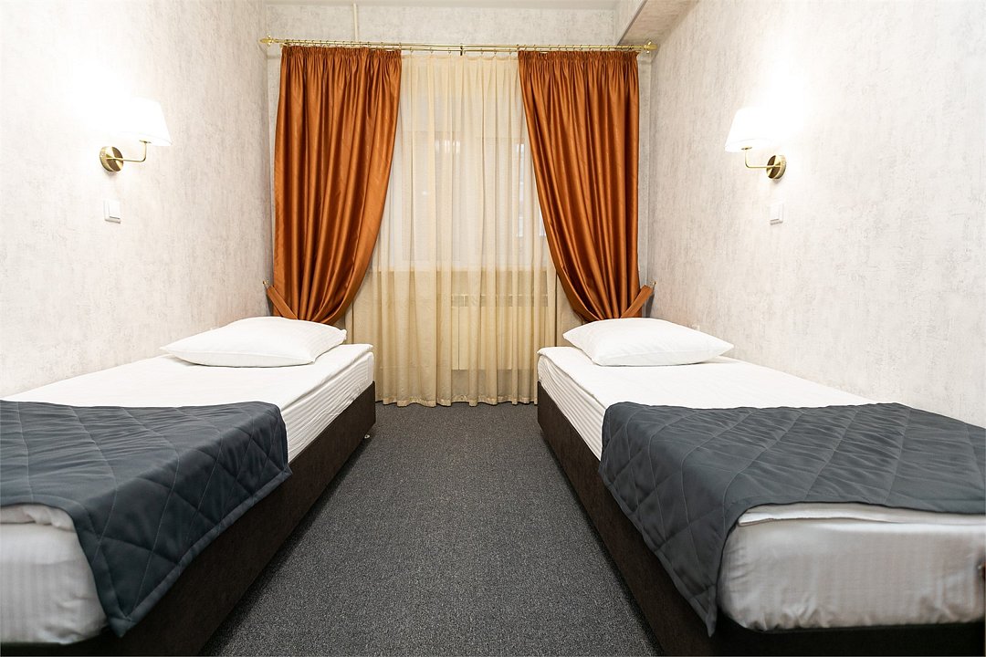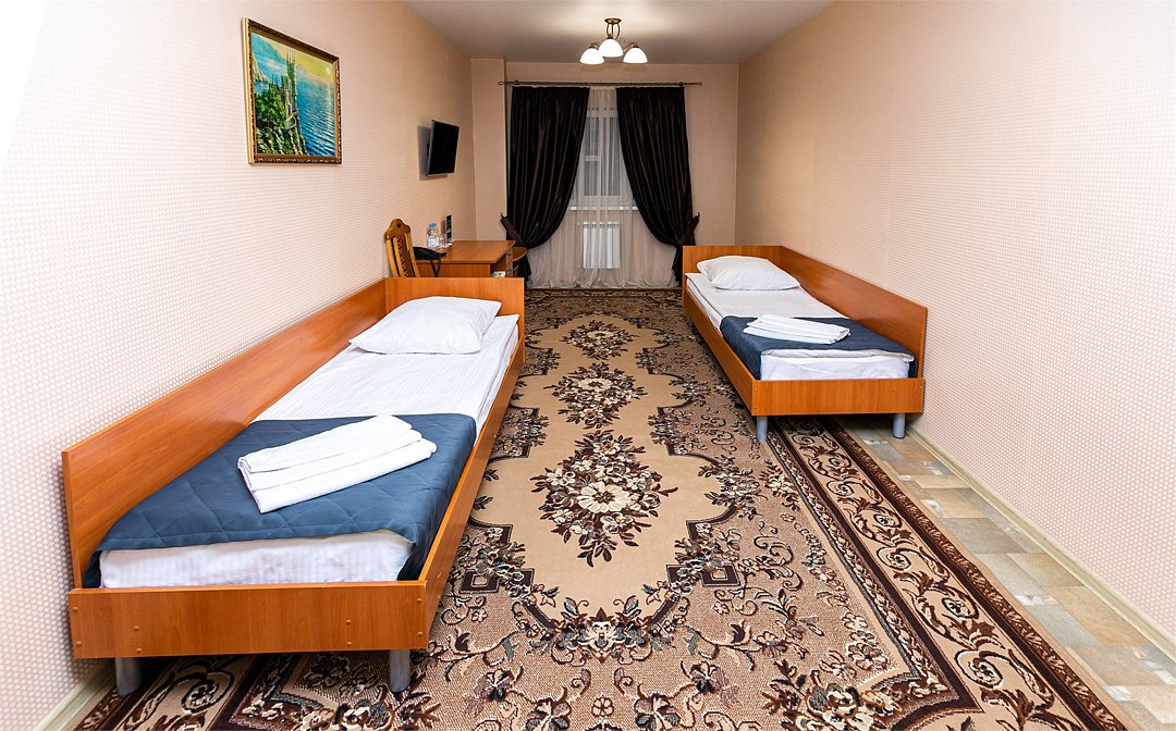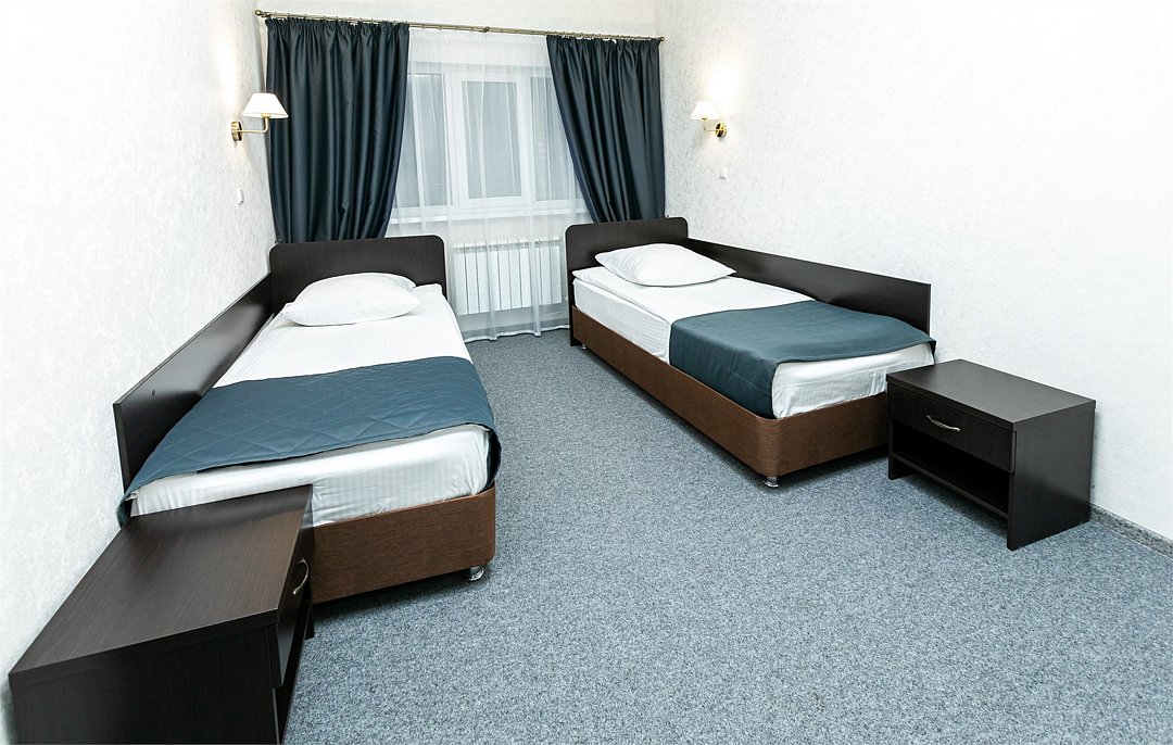 Однокомнатный номер площадью 19 кв.м. оснащенный двумя односпальными кроватями. Предназначен для размещения одного или двух гостей.Услуги и удобства