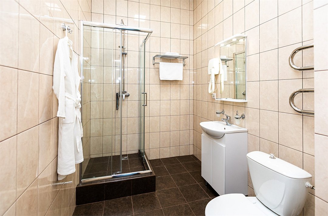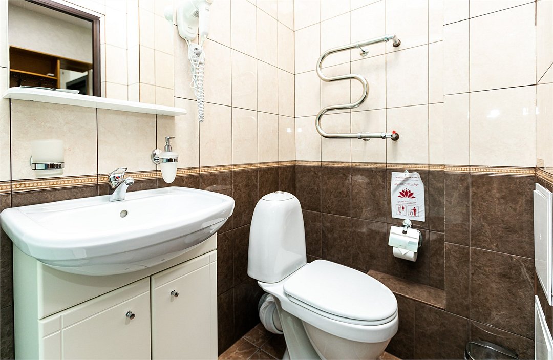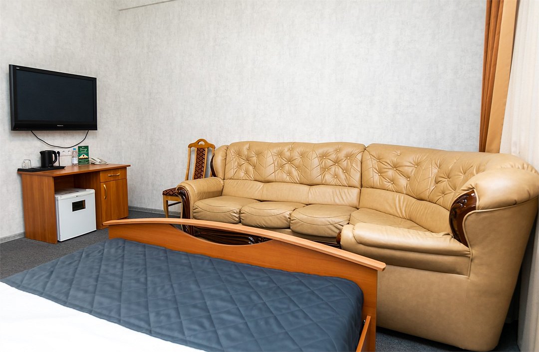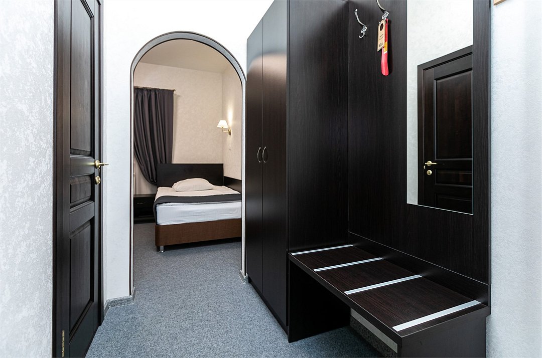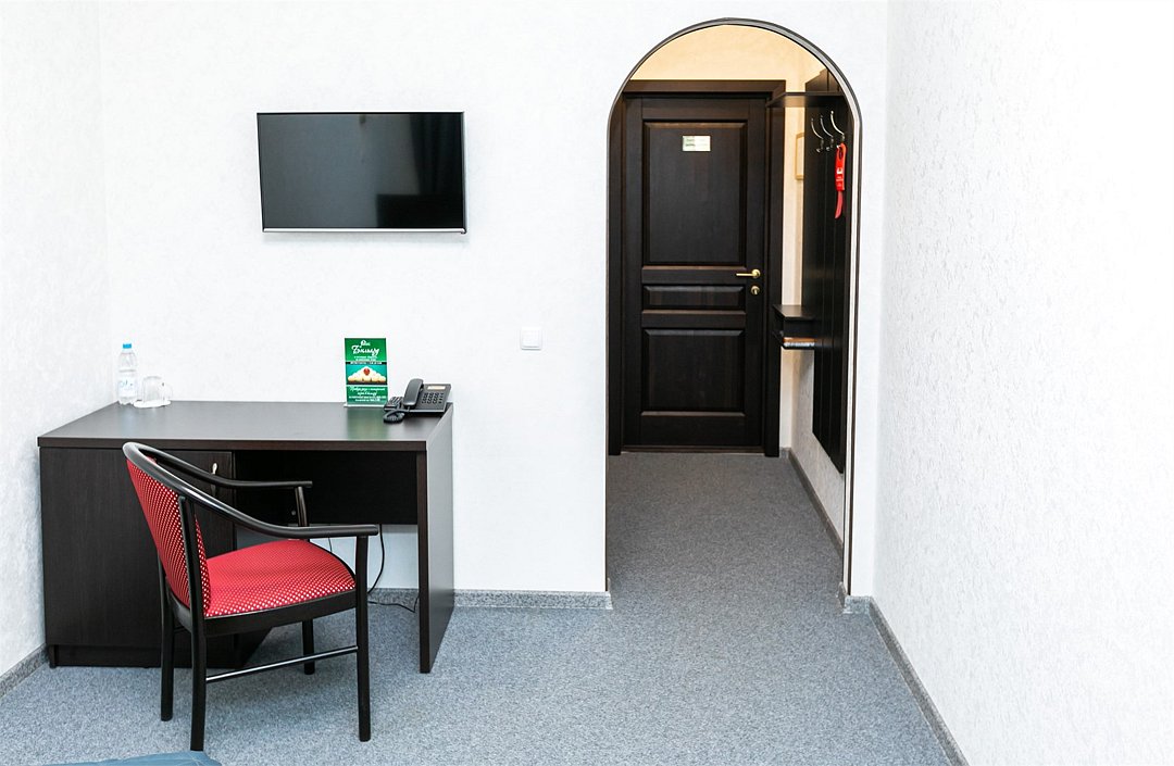 Однокомнатный номер площадью 26 кв.м., оснащенный двухспальной кроватью, есть возможность размещения на доп.месте.Услуги и удобства