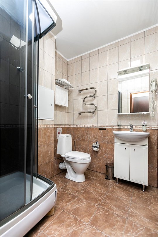 телевизор, кабельное телевидение, Wi-Fi, телефон, светильник, фен, система безопасности, душевая кабина, банные полотенца, тапочки, гигиенические средства, полутораспальная кровать, шкаф для одежды, вешалки, письменный стол, багажная тумба, зеркало, обслуживание номеров, информационная карта, меню, сейф, унитаз, раковина, питьевая вода, ковровое покрытие, отопление, вид на город, кулер на этаже, кресло, стаканы, тумба, туалетные средства, мини-холодильник, москитная сетка, без питомцевВ номере