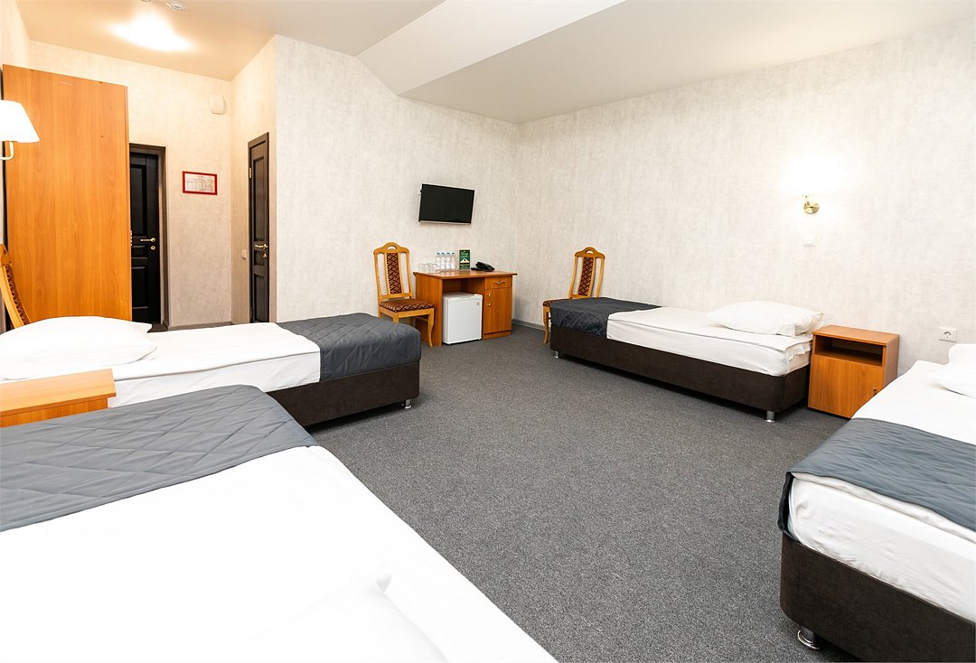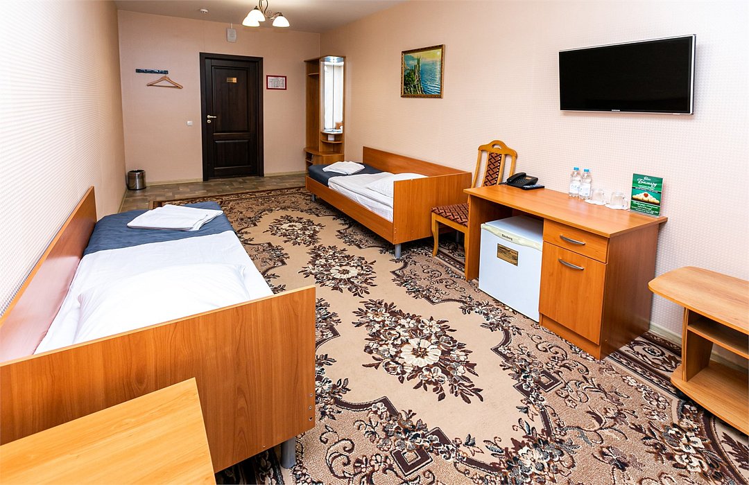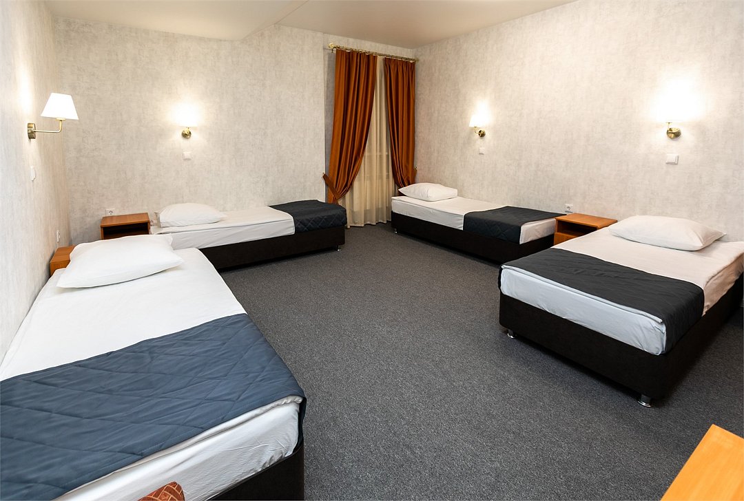 Однокомнатный номер площадью 30 кв.м, оснащенный тремя односпальными кроватями.Услуги и удобства