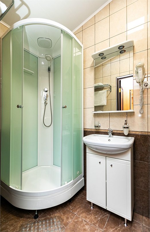 кабельное телевидение, Wi-Fi, светильник, фен, душевая кабина, две односпальные кровати, шкаф для одежды, зеркало, сейф, унитаз, раковина, питьевая вода, кулер на этаже, вид во двор, стаканы, стул, стол, тумба, внутренний телефон, телевизор с плоским экраном, мини-холодильник, москитная сетка, номер для некурящих, без питомцевВ номере