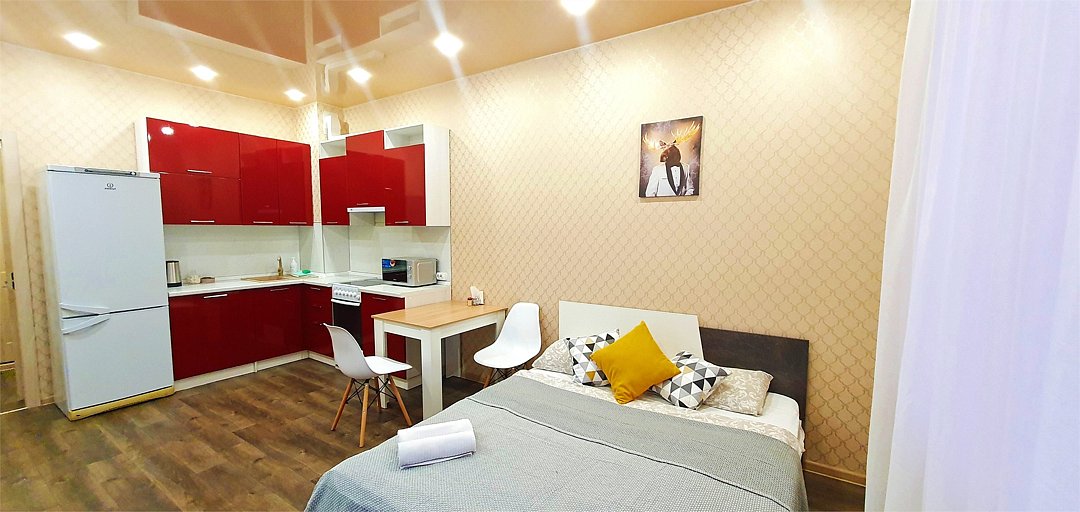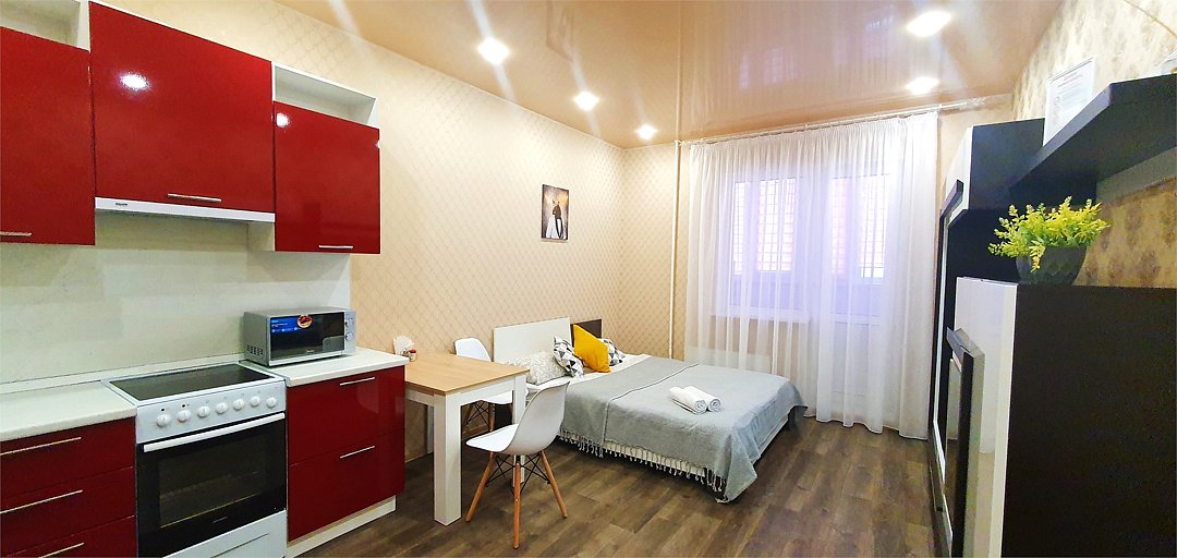 ✅На период отключения горячей воды ЦЕНА СНИЖЕНА!!! Красивая студия рядом с ТРЦ Аура, в которой удобно разместятся до 2-х человек. Хорошая транспортная развязка на ЖД вокзал и Аэропорт, не более 15 минут езды. Рядом находится парк «Снежинка» и новый дворец искусств «Нефтяник» Автосалоны «Nissan» «КIА» Мы создали в квартире приятную атмосферу домашнего уюта и комфорта. Для приятного времяпрепровождения есть безлимитный WI FI и TV. Усталость после насыщенного дня можно снять приняв ванну, для этого мы подготовили: - жидкое мыло - гель для душа - шампунь - фен - комплекты махровых полотенец На кухне есть всё необходимое для приготовления пищи: - холодильник - электрический чайник - микроволновка - варочная поверхность - духовой шкаф - комплекты посуды и приборов Если у вас появится необходимость освежить свои вещи для этого у нас есть: - стиральная машина - утюг - гладильная доска Отчетные документы.Услуги и удобства