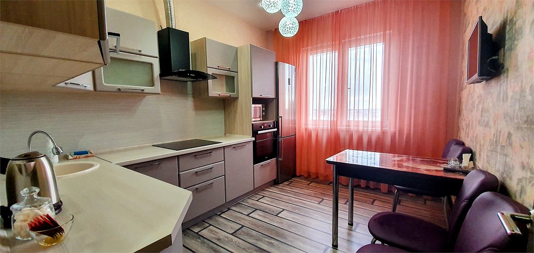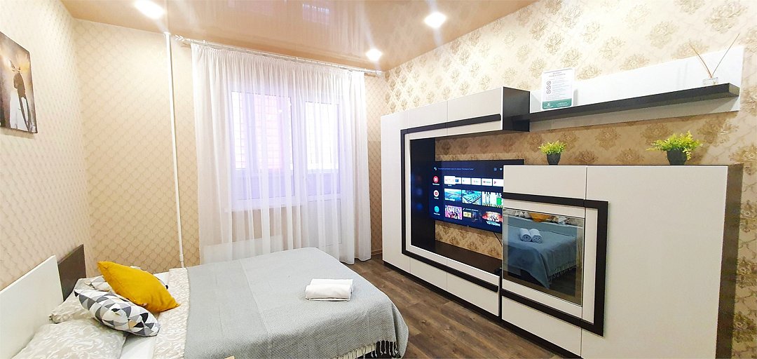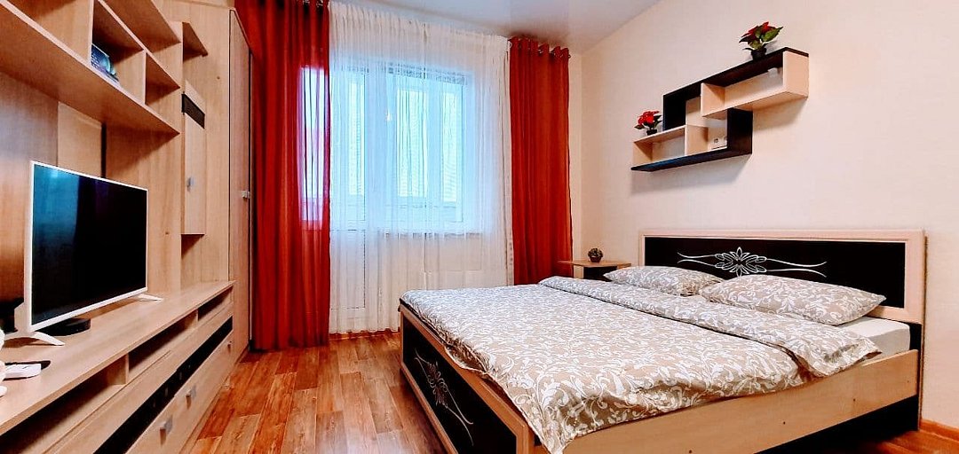1-комнатная квартира в районе ТРЦ Аура, в которой удобно разместятся до 4-х человек. ТРЦ «Аура» находится в 300 метрах от дома. Магазины, кафе, рестораны, банкоматы в Ауре. В 10-ти минутах ходьбы находится Лечебно-диагностический центр «Наджа» и Китайский рынок. Хорошая транспортная развязка на ж/д вокзал и Аэропорт, не более 15 минут езды. Рядом находится парк «Снежинка» и новый дворец искусств «Нефтяник» Автосалоны «Nissan» «КIА» Мы создали в квартире приятную атмосферу домашнего уюта и комфорта. Для приятного времяпрепровождения есть безлимитный интернет WI-FI, два телевизора и кабельное TV. Вечернюю усталость можно снять приняв душ для этого мы подготовили: - жидкое мыло - гель для душа - шампунь - одноразовые зубные щетки с пастой - комплекты махровых полотенец - фен На кухне есть всё необходимое для приготовления вкусных блюд и чаепития: - холодильник - электрический чайник - микроволновка - варочная поверхность - духовой шкаф - комплекты посуды и приборов Если у вас появится необходимость освежить свои вещи для этого у нас есть всё: - стиральная машина - сушилка для белья - утюг - гладильная доска Отчетные документы.Услуги и удобства
