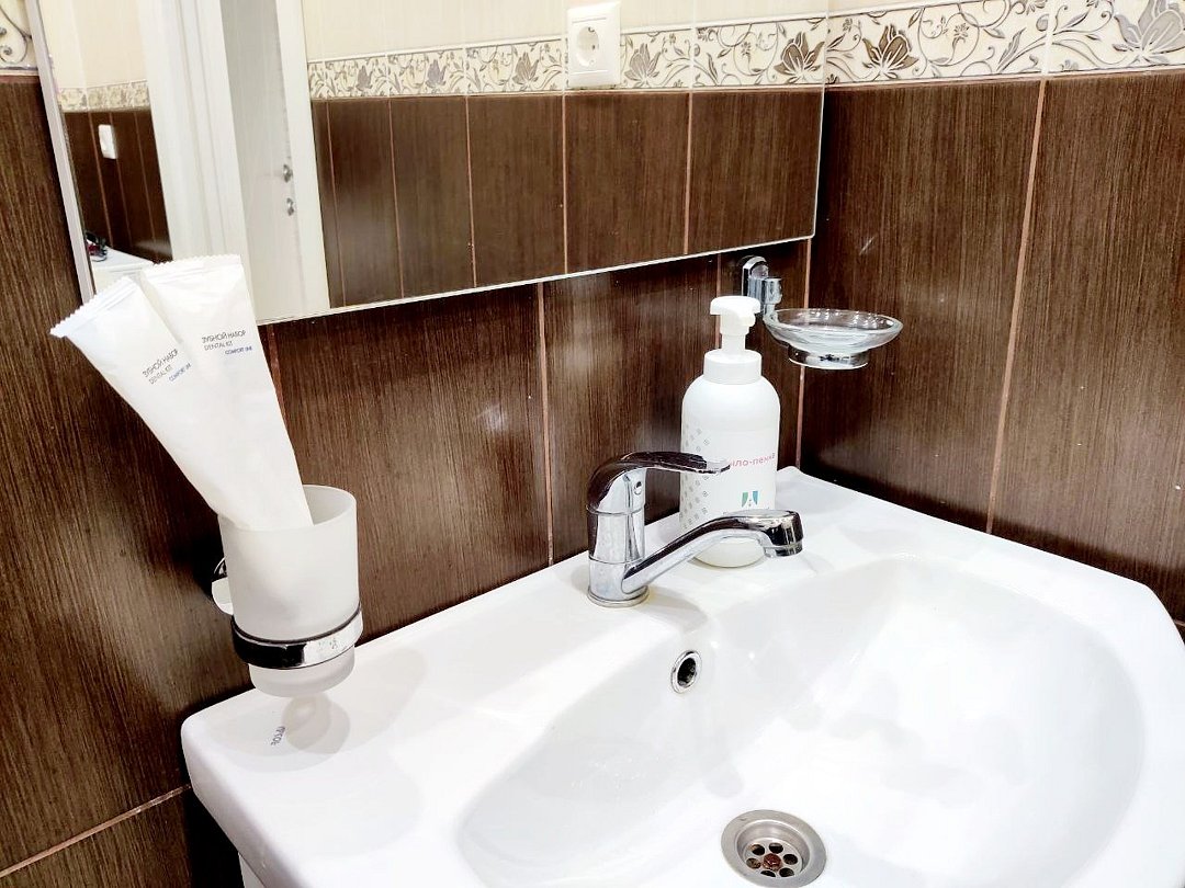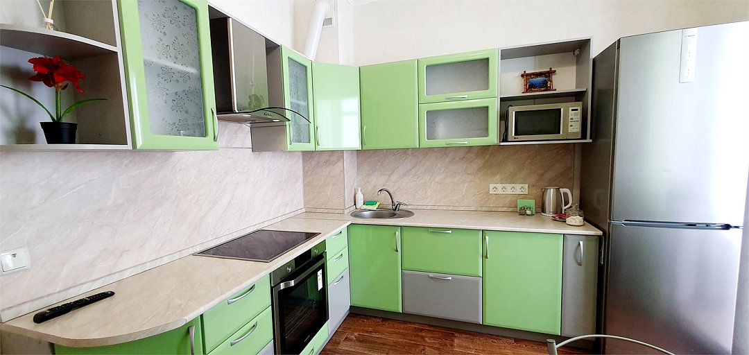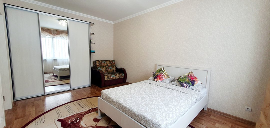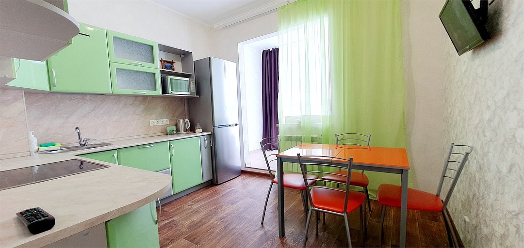 В уютной квартире возле Ауры, может разместиться до 3 человек. В шаговой доступности от дома находятся магазины, ТРЦ «Аура», кафе, рестораны, банкоматы. Для Вас мы приложили все усилия что бы создать атмосферу домашнего уюта и комфорта. Гарантируем абсолютную чистоту. Для отдыха и сна: - телевизор - постельное белье - одноразовые тапочки Уход за телом: - жидкое мыло - гель для душа - шампунь - одноразовые зубные щетки с пастой - фен - комплекты махровых полотенец Техника и принадлежности быта: - стиральная машина - утюг - гладильная доска - сушилка для белья Кухня оборудована всем необходимым для приготовления вкусной еды: - холодильник - электрический чайник - микроволновка - варочная поверхность - духовой шкаф - комплекты посуды и приборов А так же безлимитный интернет WI-FI и кабельное tv Отчетные документы.Услуги и удобства